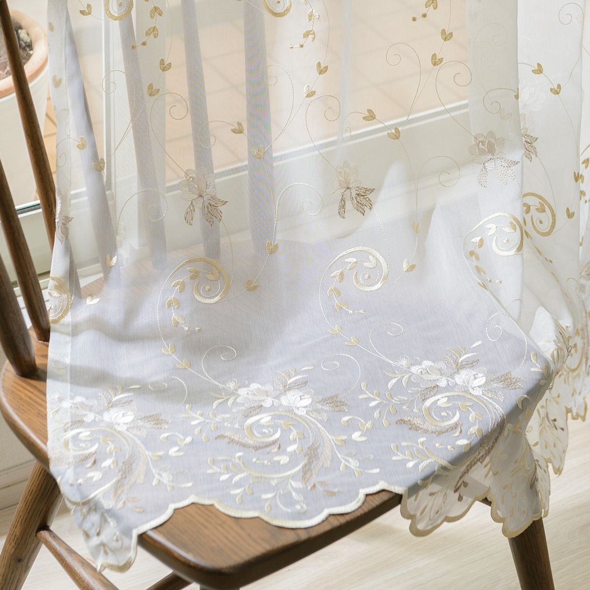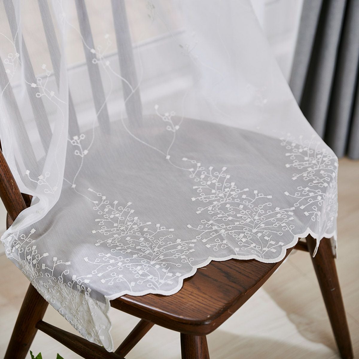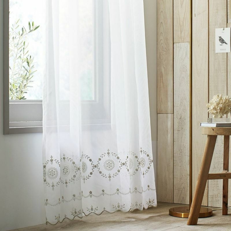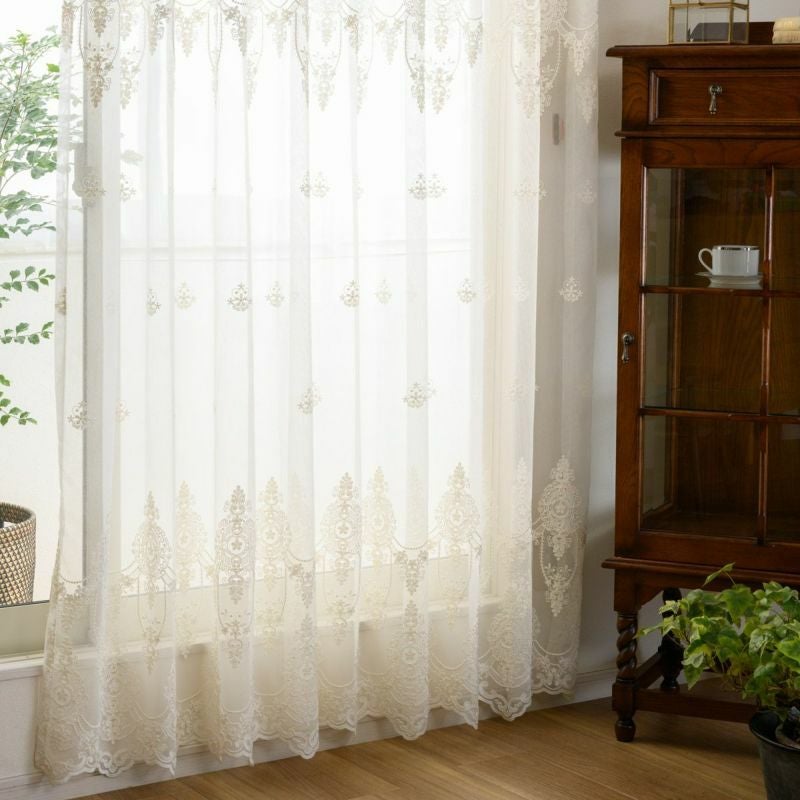 上品な小花と唐草の刺繍が美しいトルコ刺繍レースカーテン