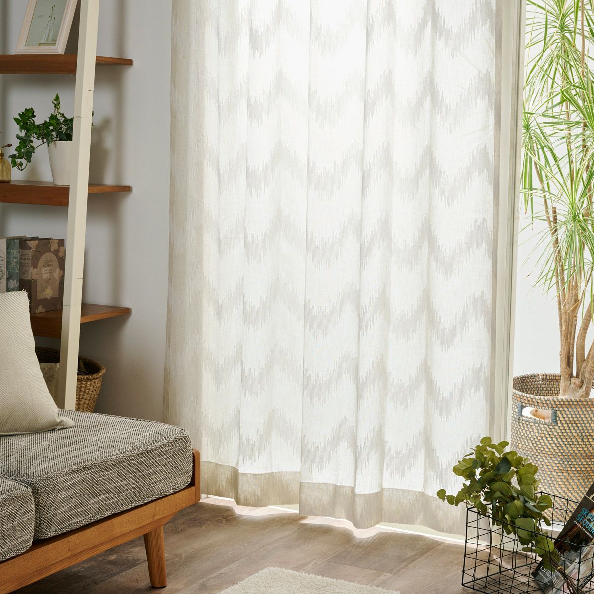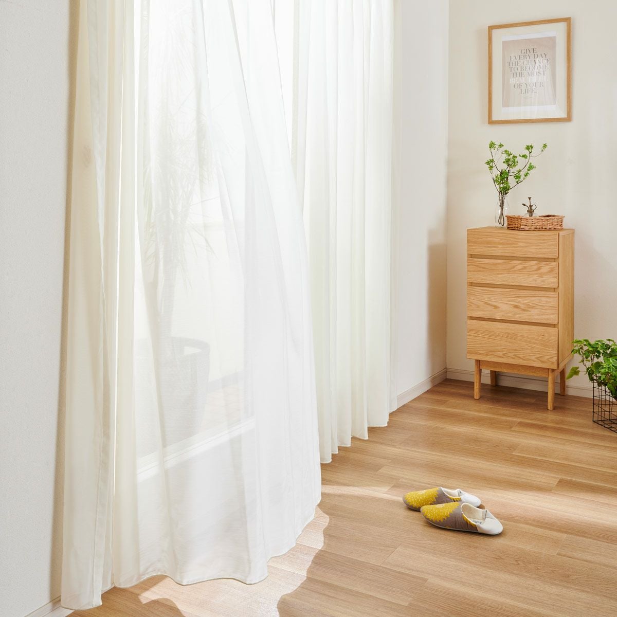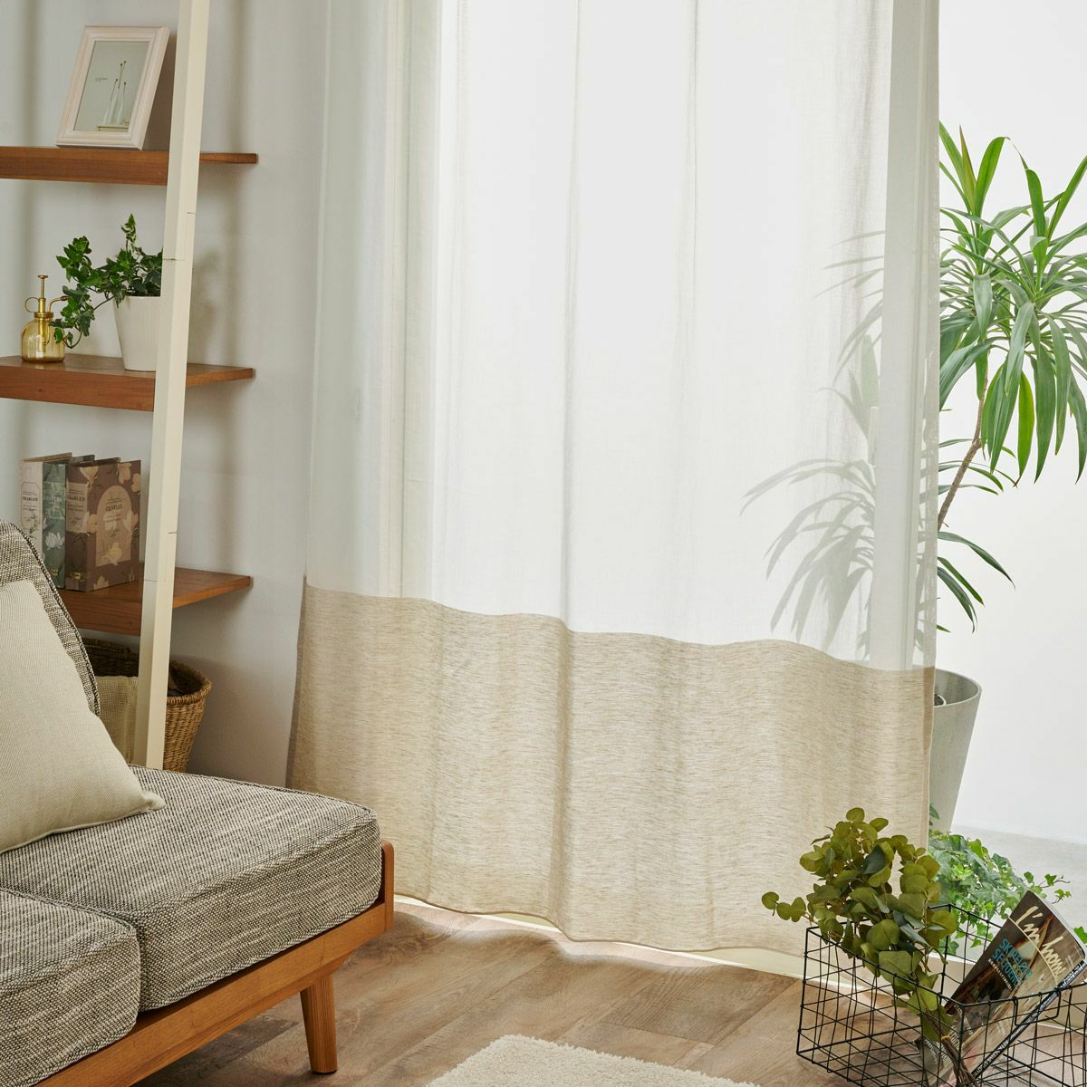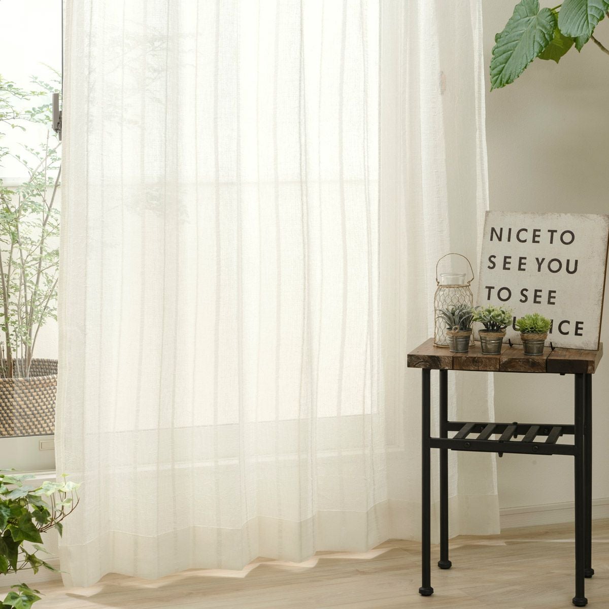 リネン85%ナチュラルなインテリアに合う大きな窓でも美しいシームレスレースカーテン
