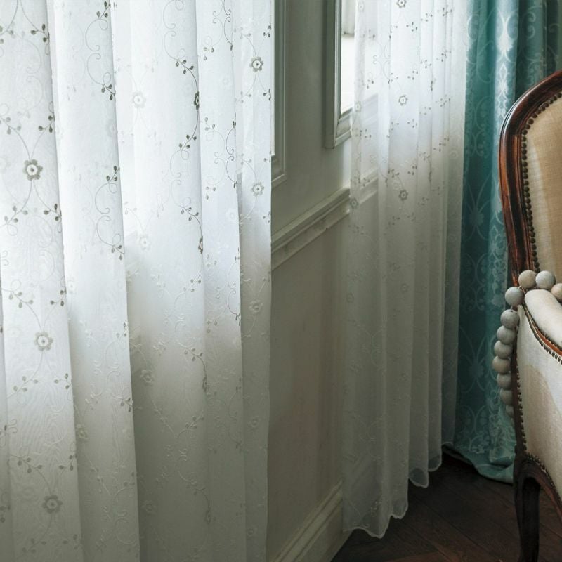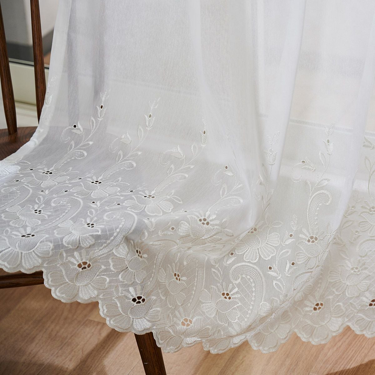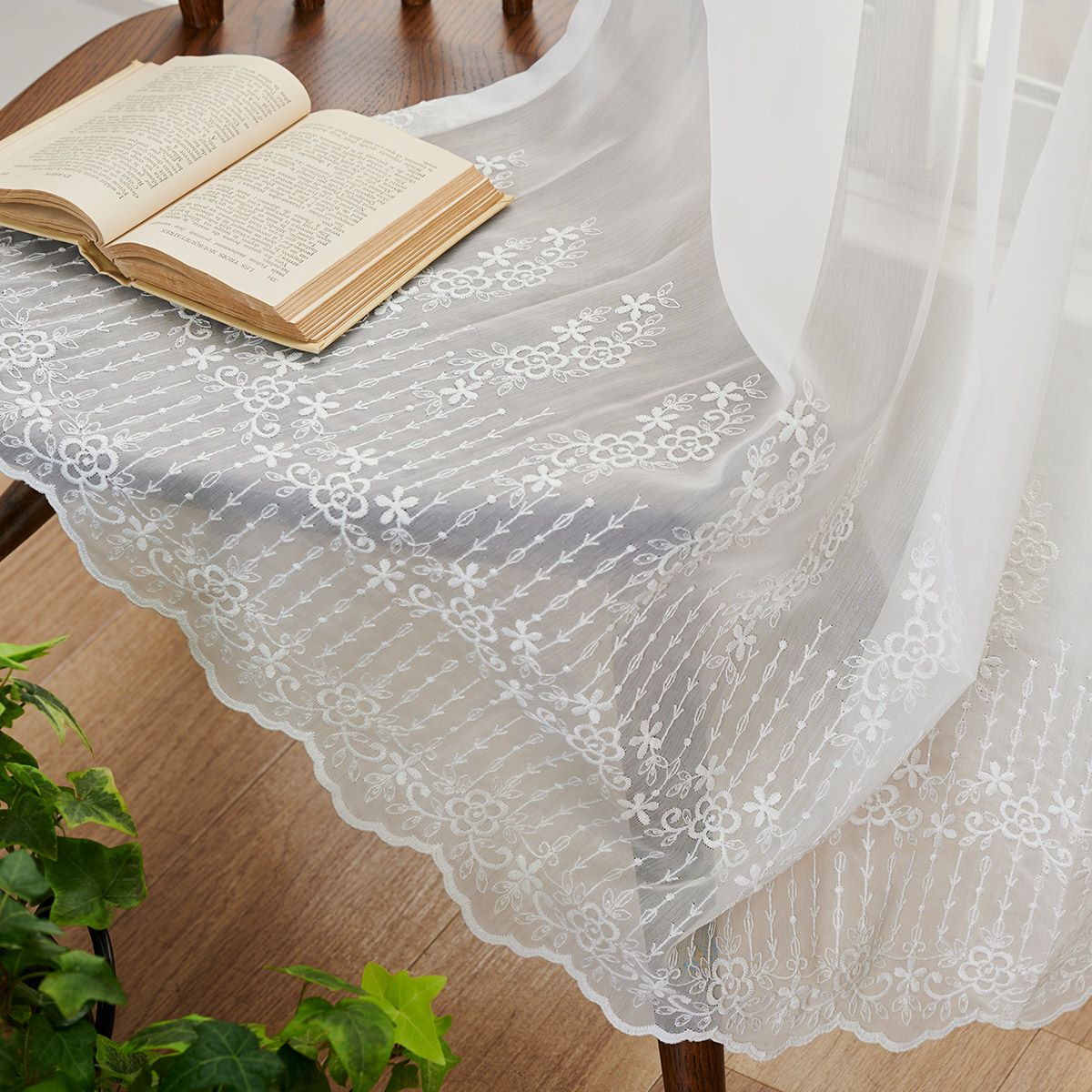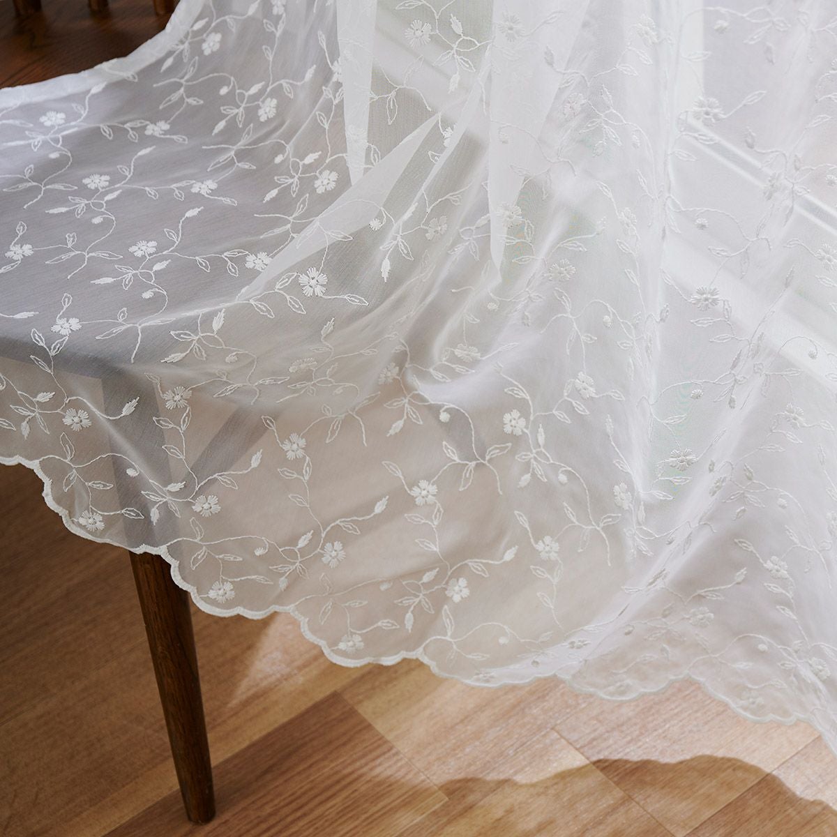 上品な小花と唐草の刺繍が美しいトルコ刺繍レースカーテン ラフィネ(L-8205)