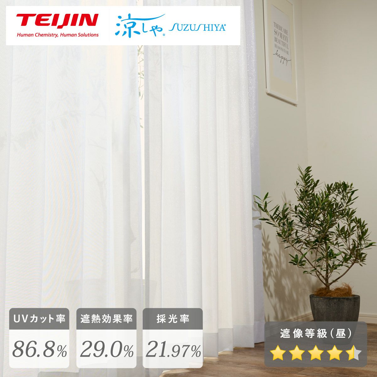 遮熱効果抜群!外から見えにくくシンプルで美しい防炎レース