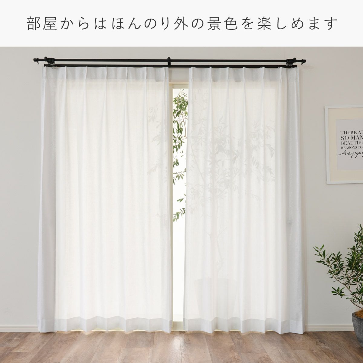 リネン85%ナチュラルなインテリアに合う大きな窓でも美しいシームレスレースカーテン