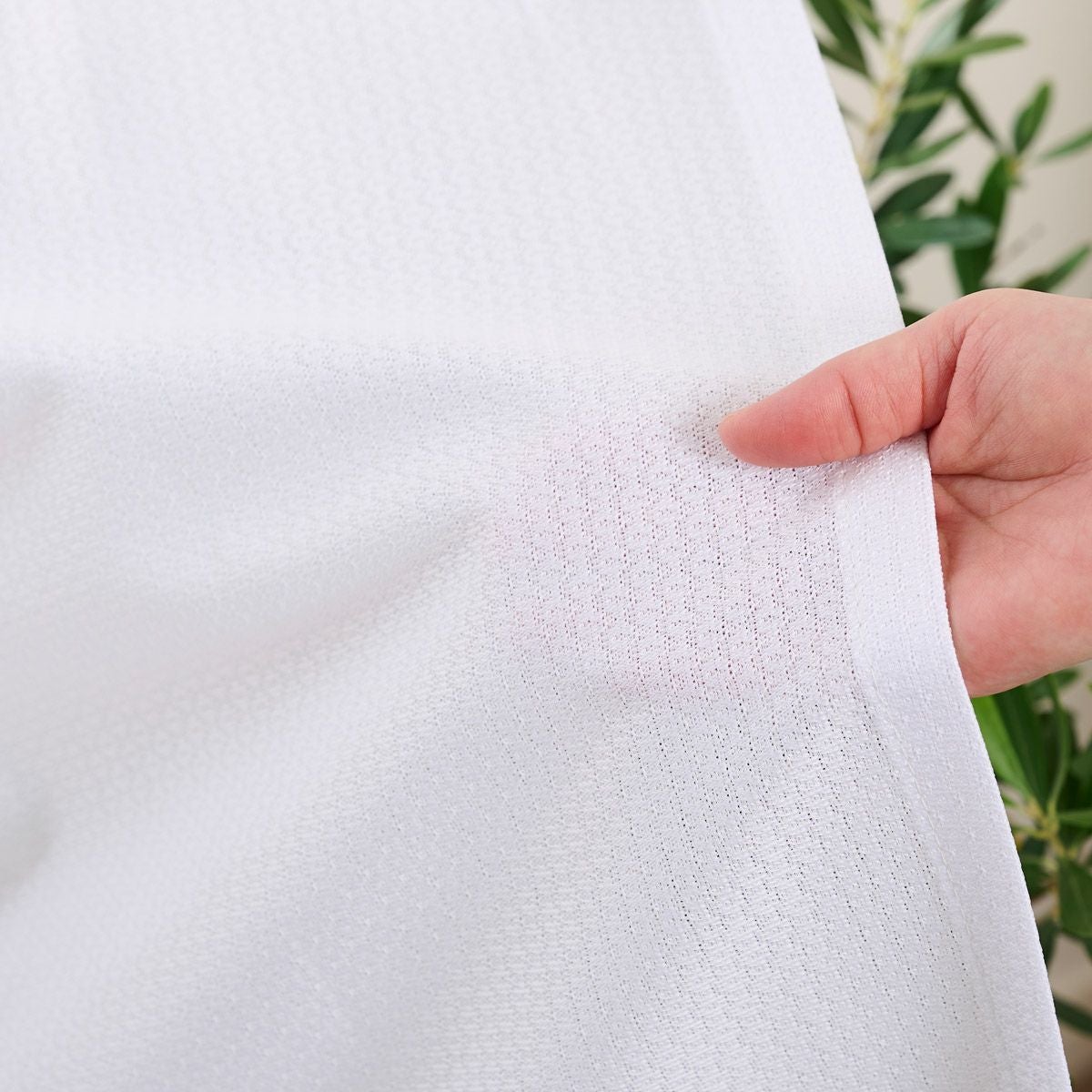 ガーゼのような柔らかいキルト生地にダマスク柄のステッチを施したシームレスカーテン