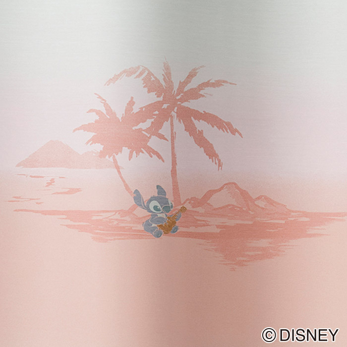 ハワイの夕暮れにスティッチとエンジェルがビーチでたたずむデザインをプリントしました。