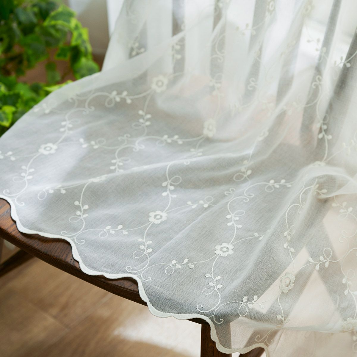上品な小花と唐草の刺繍が美しいトルコ刺繍レースカーテン