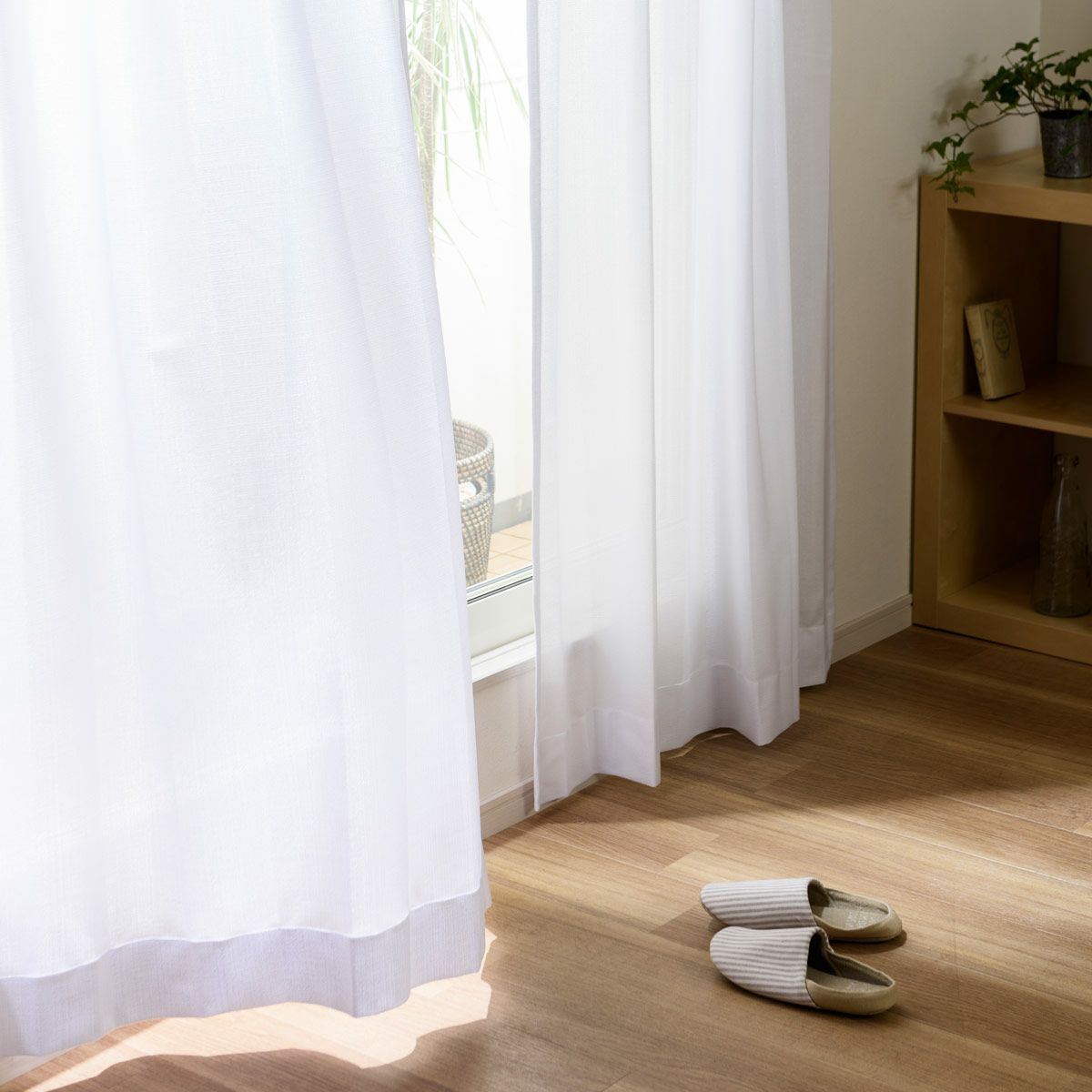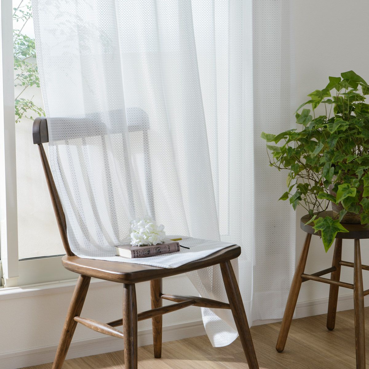 全てのドレープカーテンとコーディネートしやすい定番の無地の白いレースカーテン。