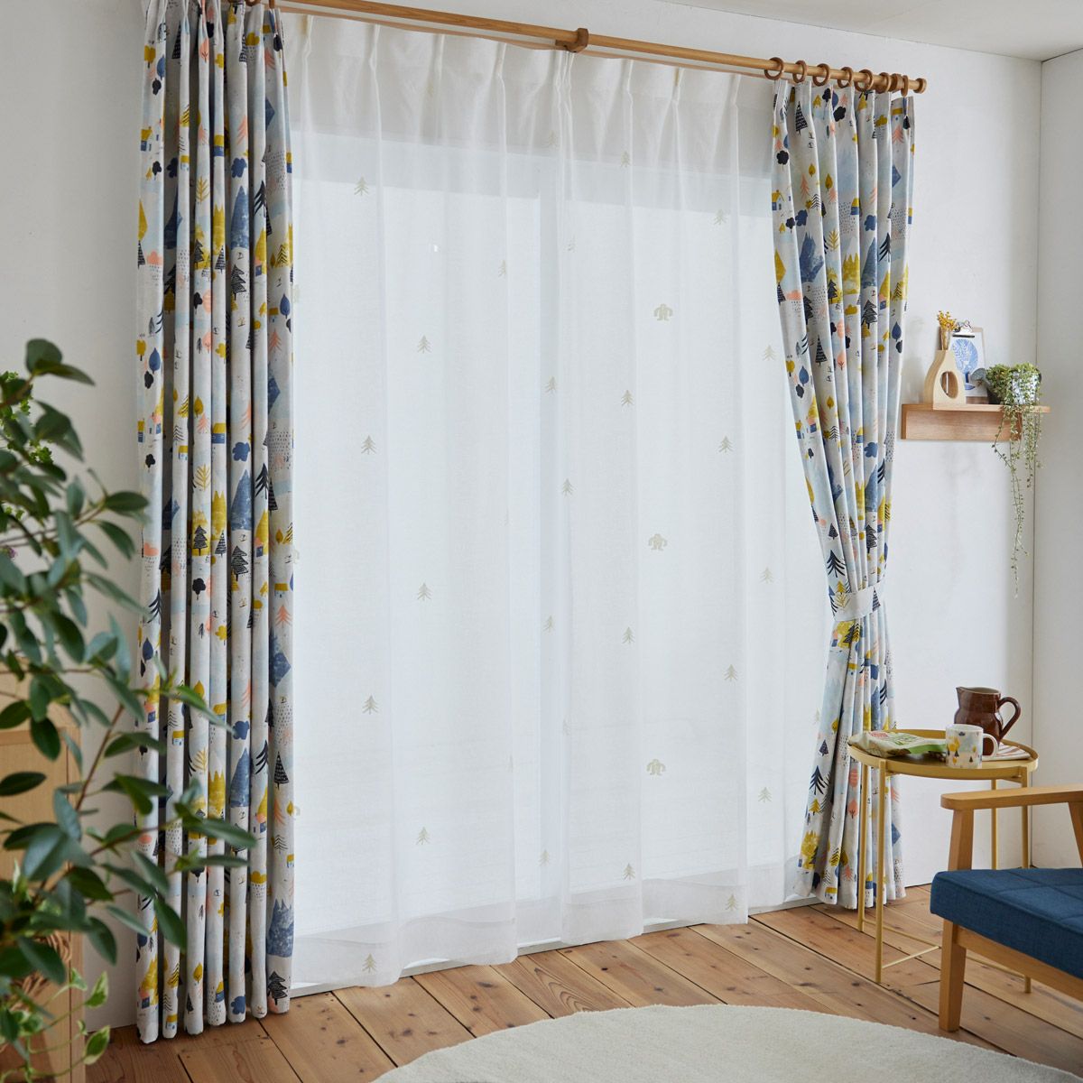 北欧ナチュラルな花と動物のモチーフがおしゃれな1・2級遮光カーテン