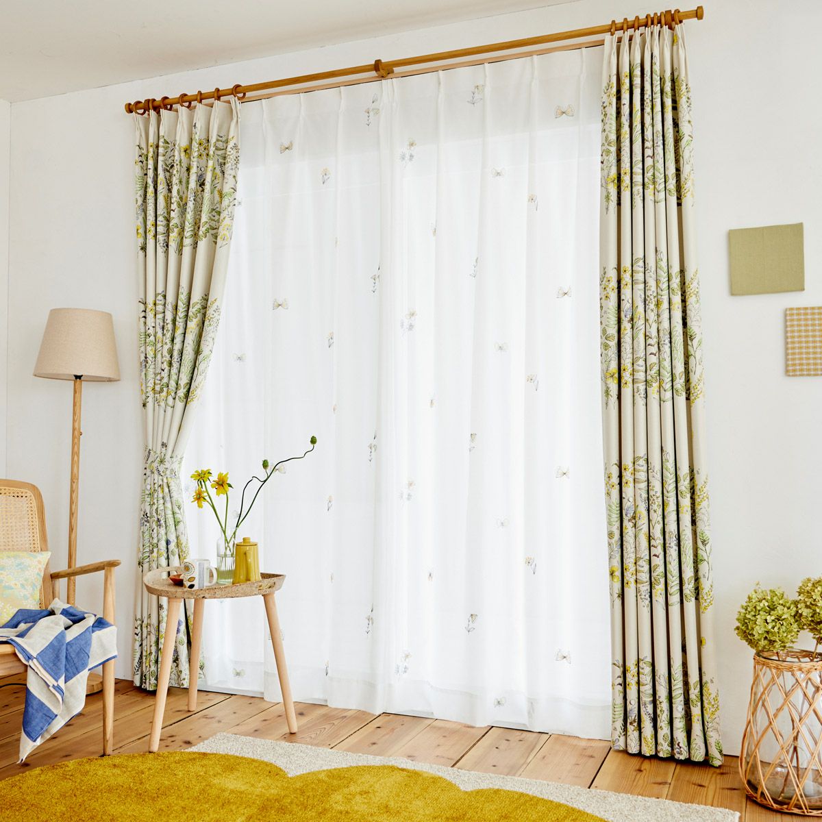 北欧テイストのラフな花柄が魅力の1・2級遮光カーテン