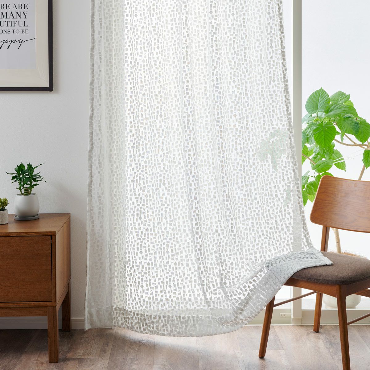 レースカーテンは白い無地が一般的ですが、デザインや色に特徴なレースカーテンをお選びいただくと、お部屋がより洗練されたインテリアに仕上がります。