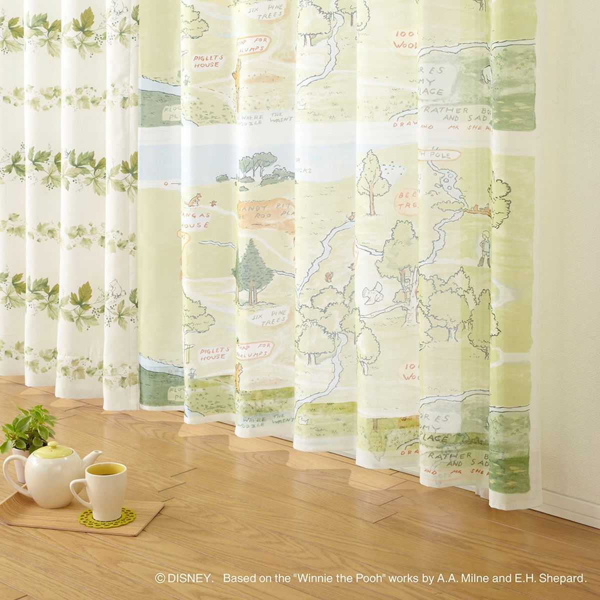 水彩タッチのリーフ柄に癒される完全1級遮光カーテン