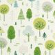 ベースのホワイトに柔らかなグリーンの木々が映え、窓辺に爽やかなアクセントを添えます。心地よい自然の気配が感じられ、ナチュラルスタイルの部屋におすすめです。