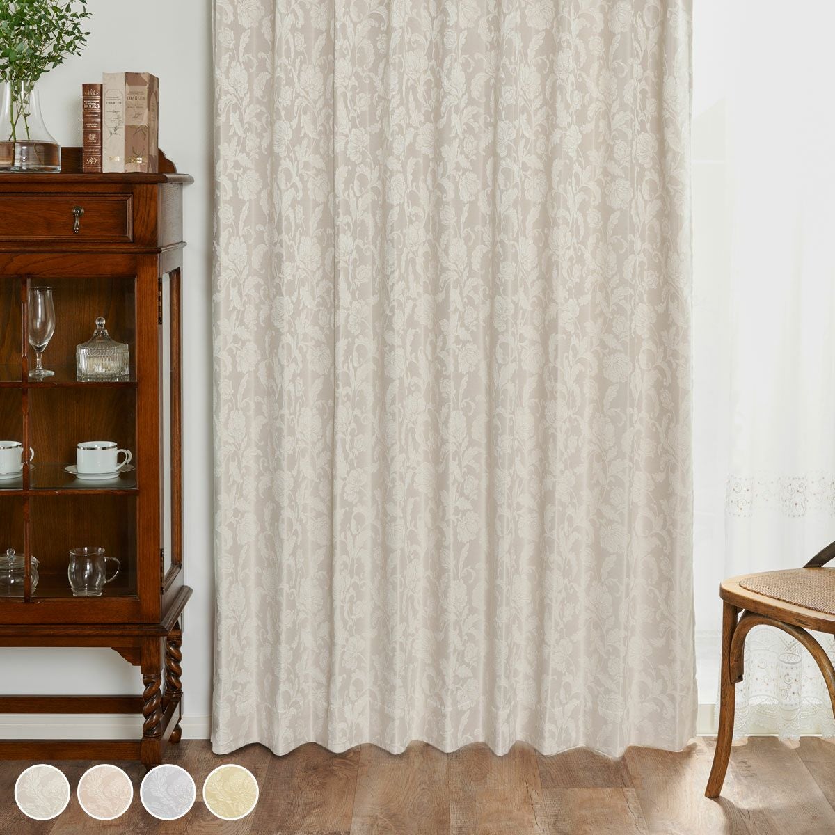 優しい色合いのジャガード織の花柄が美しい裏地付き1級遮光カーテン ルイーズ(D-1148)