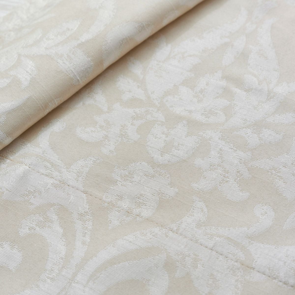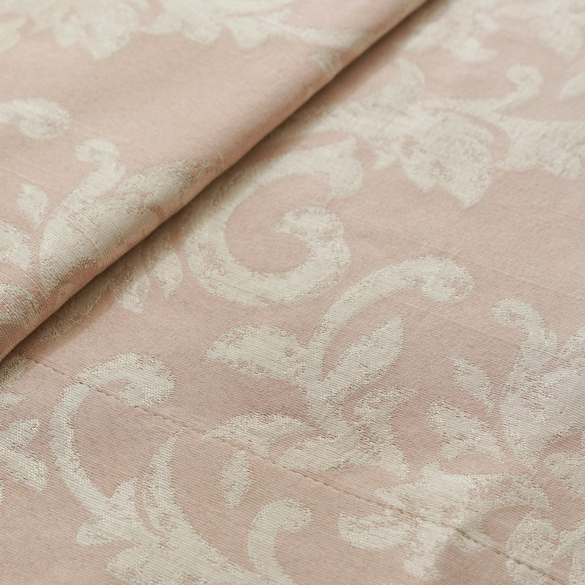 ガーゼのような柔らかいキルト生地にダマスク柄のステッチを施したシームレスカーテン