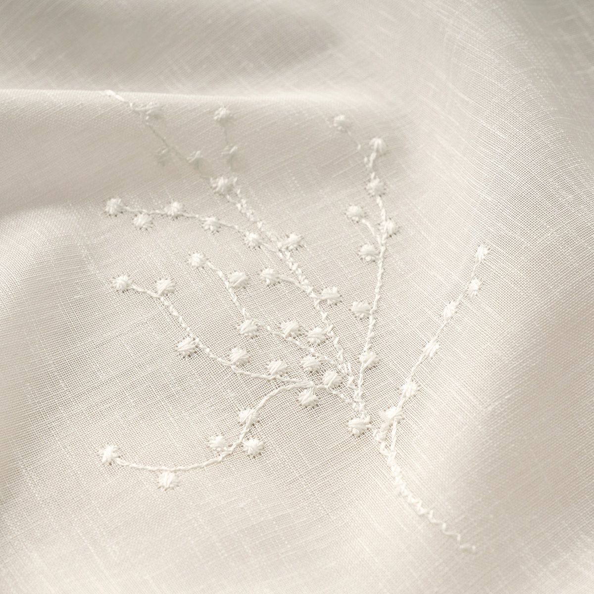 色とりどりの色糸による刺繍モチーフは華やかながら繊細で、エレガントすぎずにナチュラルなインテリアにも自然によく馴染みます。
