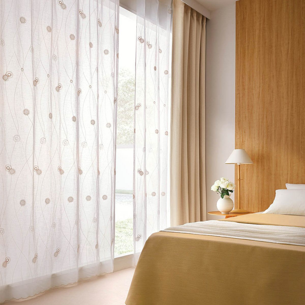 2つの模様が一つに重なり合い、複雑で美しい陰影を窓辺に映し出すデザインは、エレガントながら柔らかさがありナチュラルなインテリアにも自然になじみます。
