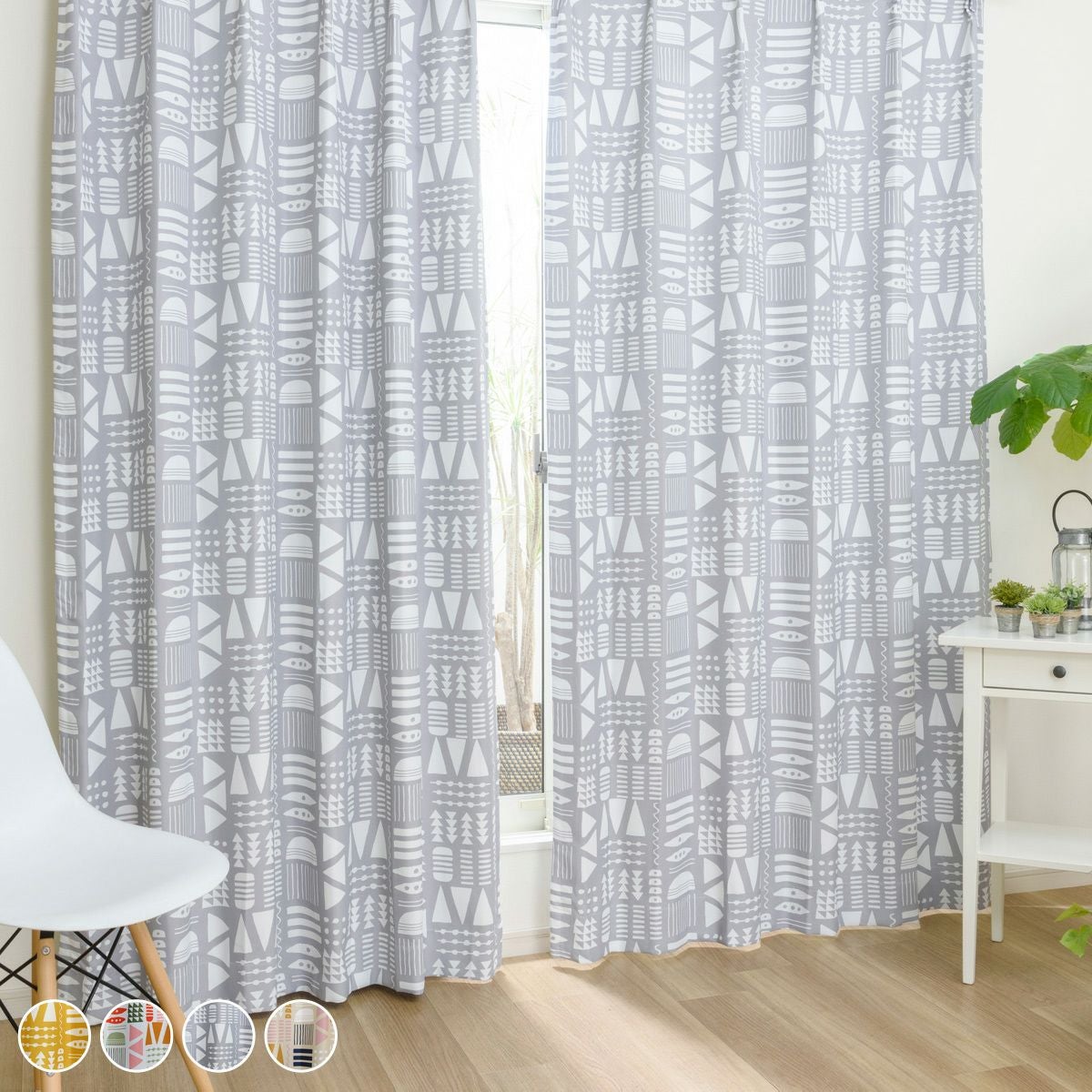 北欧モダンな幾何学模様の1・2級遮光カーテン