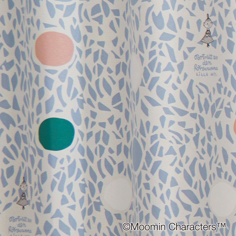 白いドットをよく見ると、ムーミンのおしり…?コロンと丸くて可愛いおしりドットが、大人の遊び心をくすぐるボイルカーテンです。