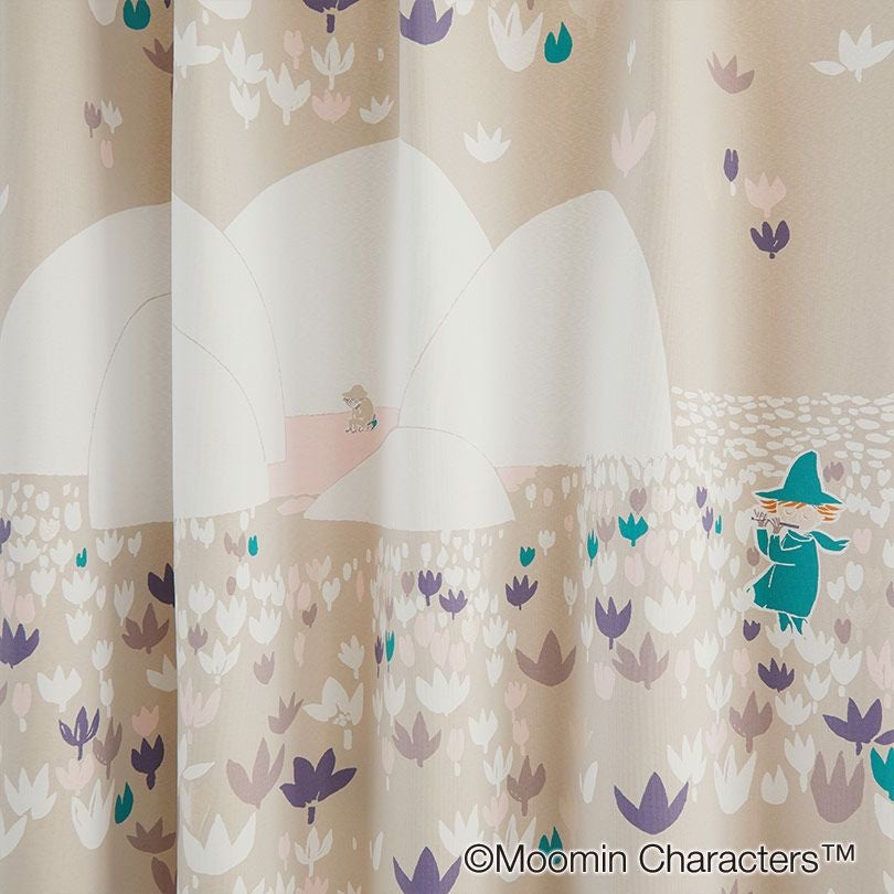 北欧デザインに代表されるフラワーモチーフが大人可愛い遮光カーテンです。ムーミンの大人気キャラクター「リトルミイ」が小花から様々な表情をのぞかせています。