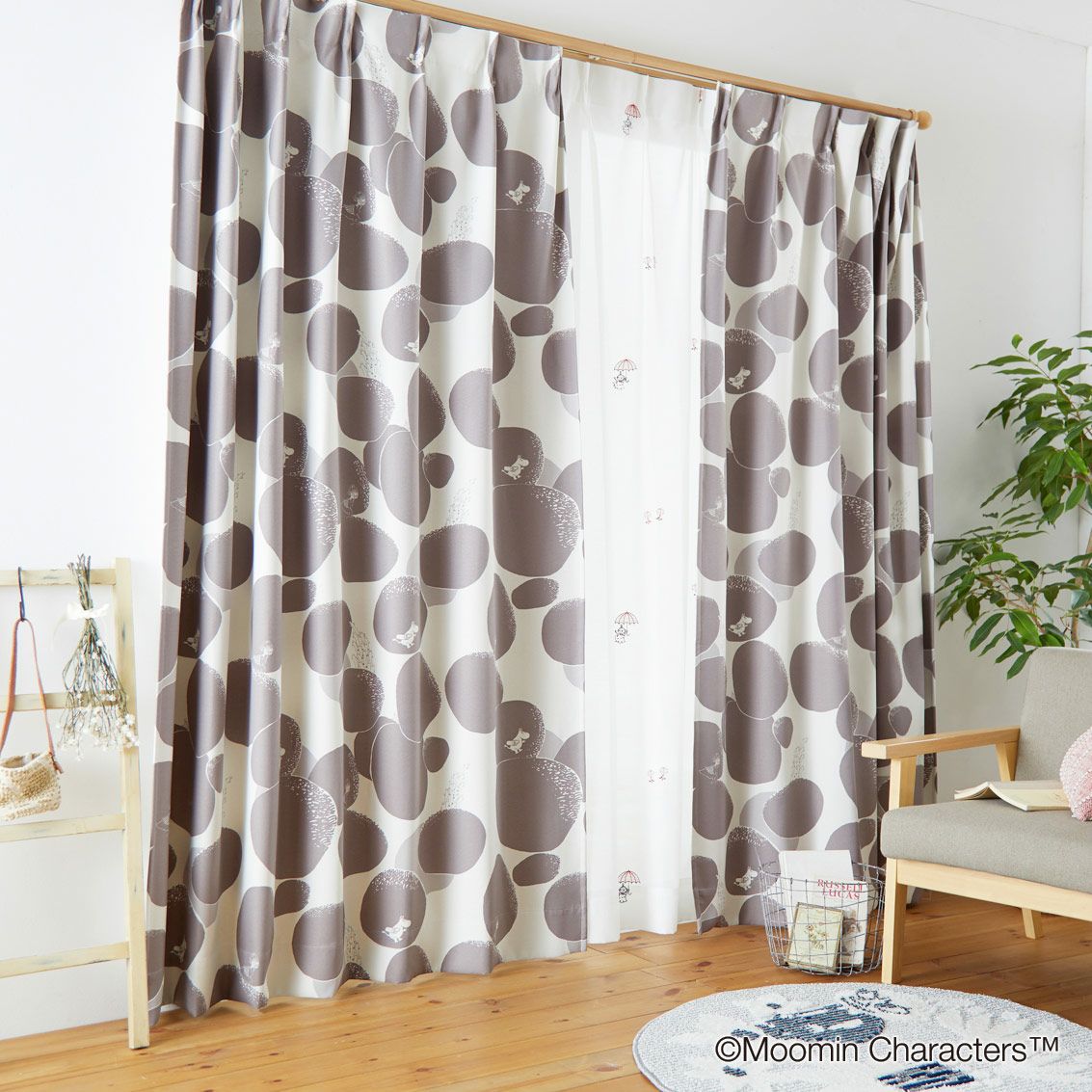ムーミンのカーテンは北欧の人々の暮らしを参考に長い時間をお部屋で快適に過ごせるよう、グレーや白、ニュアンスカラーなど自然を感じる曖昧な色味で展開されています。おしゃれな色柄とデザインは大人のインテリア空間にもしっくりと馴染みます。
