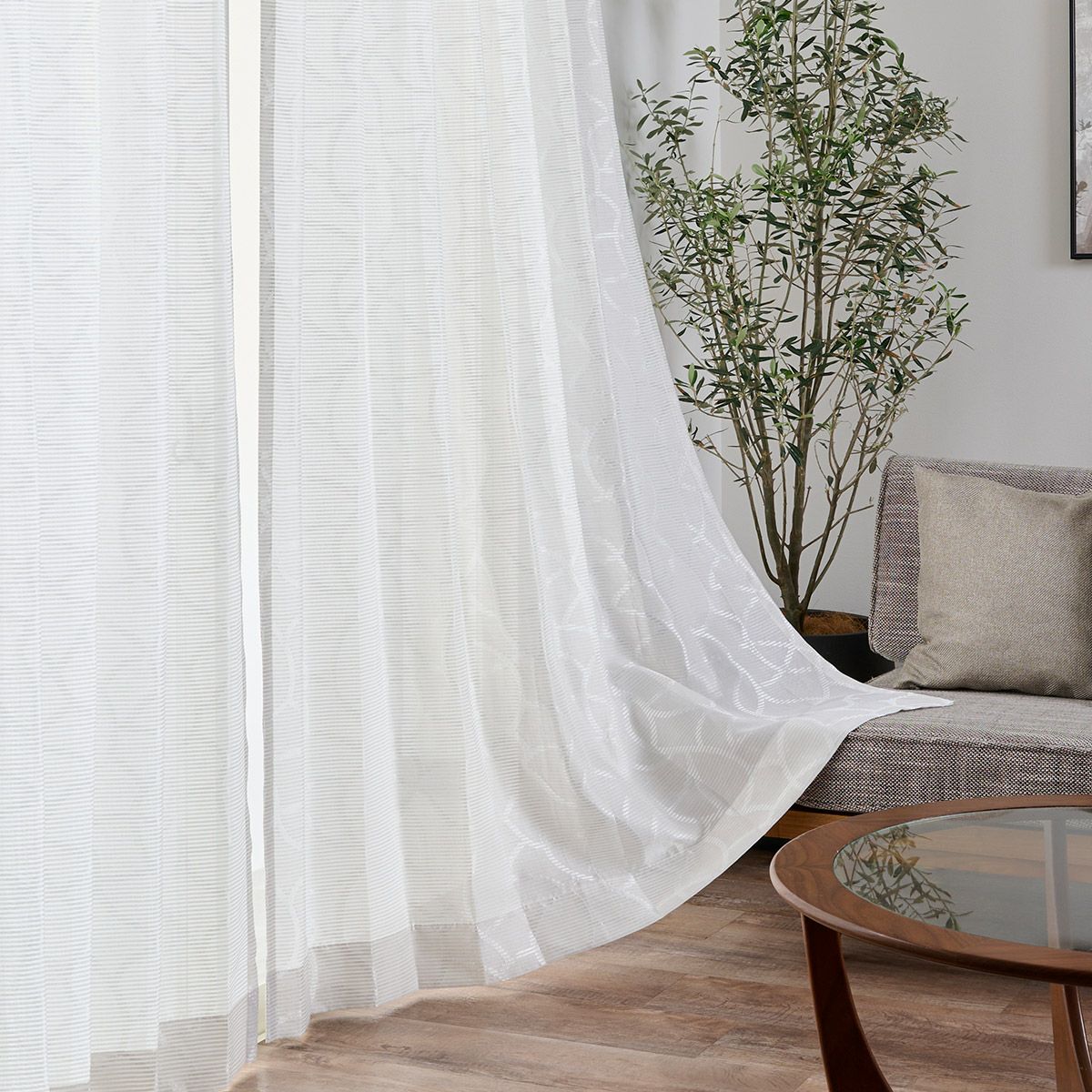 さまざまなインテリアに合わせやすく、ドレープカーテンとも組み合わせしやすい万能な1枚。