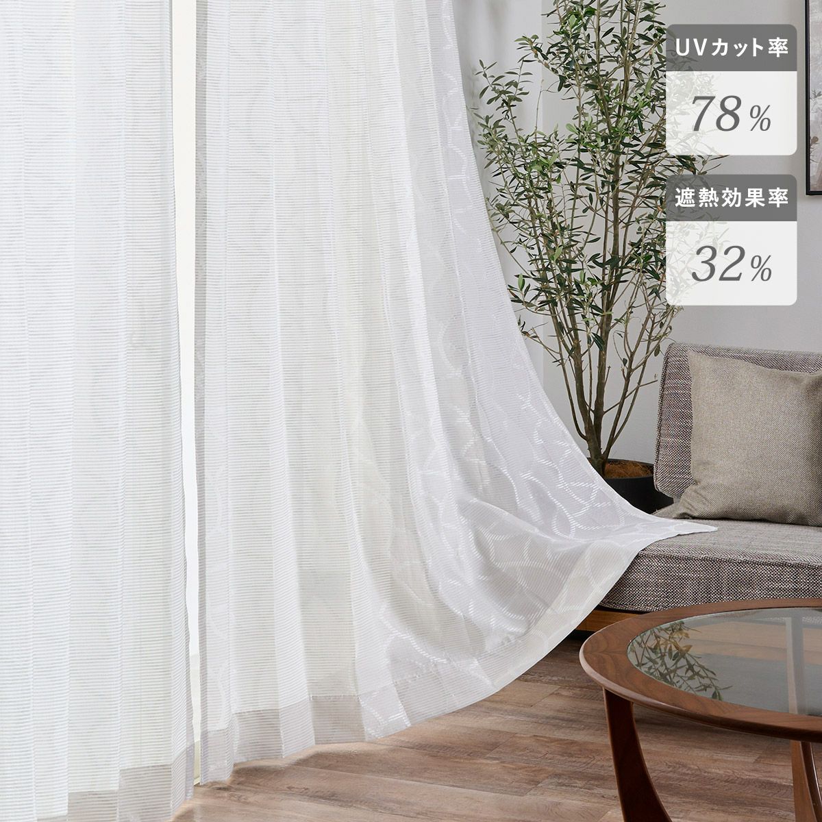UVカット機能があり、窓際での日焼けはもちろん家具の焼けなども軽減してくれます。遮熱効果により、エアコンの効きがよくなり省エネ対策にもおすすめです。
