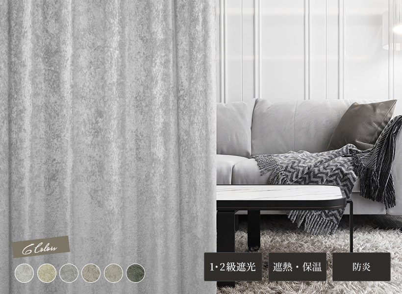8色 手触りの良いスウェード調の1・2級遮光防炎カーテン