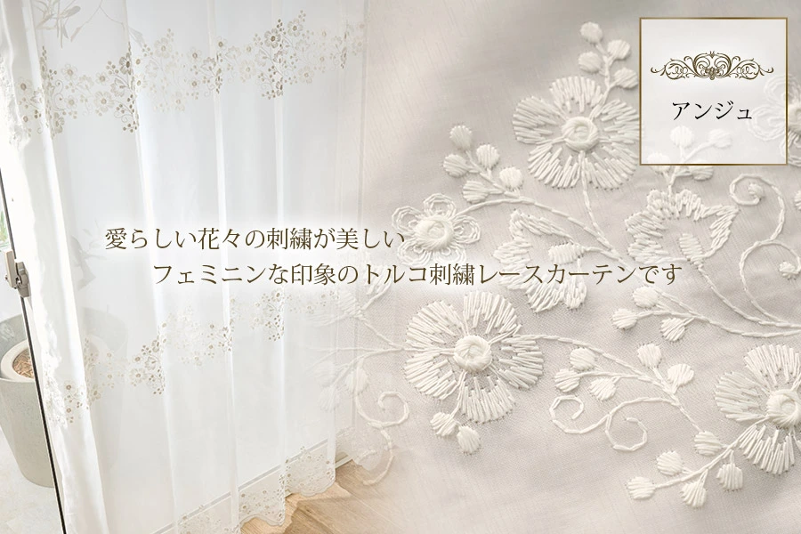 トルコ刺繍ならではの繊細でゴージャスな雰囲気は女性らしさだけでなく、ワンランク上の品格のある窓辺を作ることができます。 お好みに合わせてお選びください。