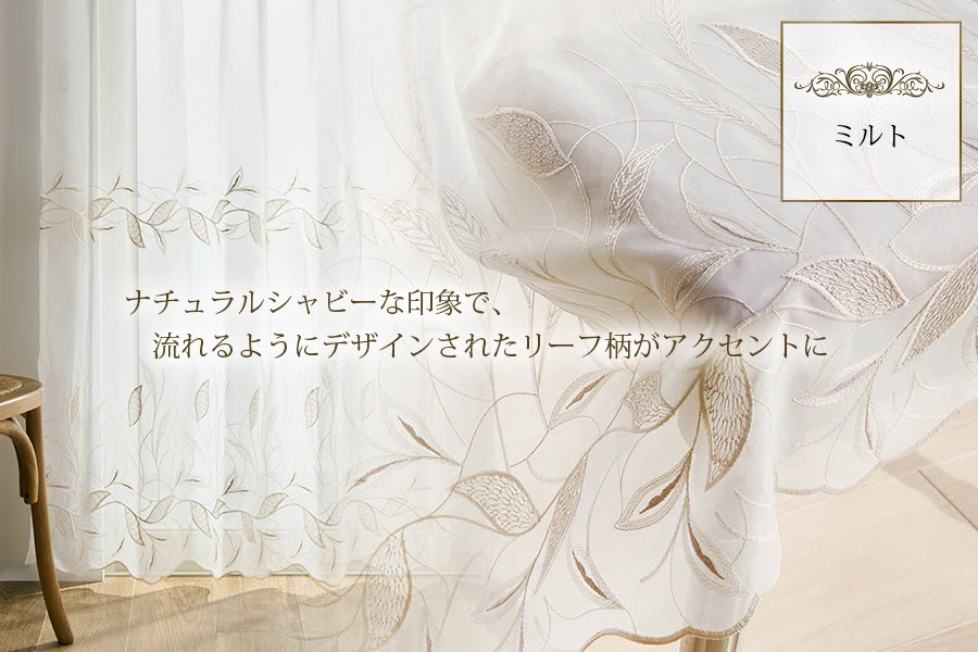 ナチュラルシャビーなリーフ柄がおしゃれなトルコ刺繍レースカーテン ミルト(L-8205)