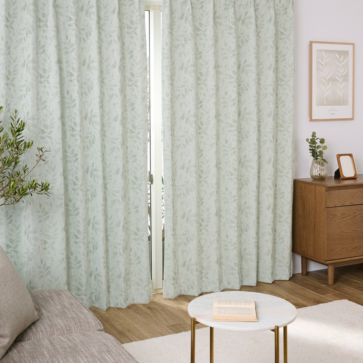 水彩タッチのリーフ柄に癒される完全1級遮光カーテン