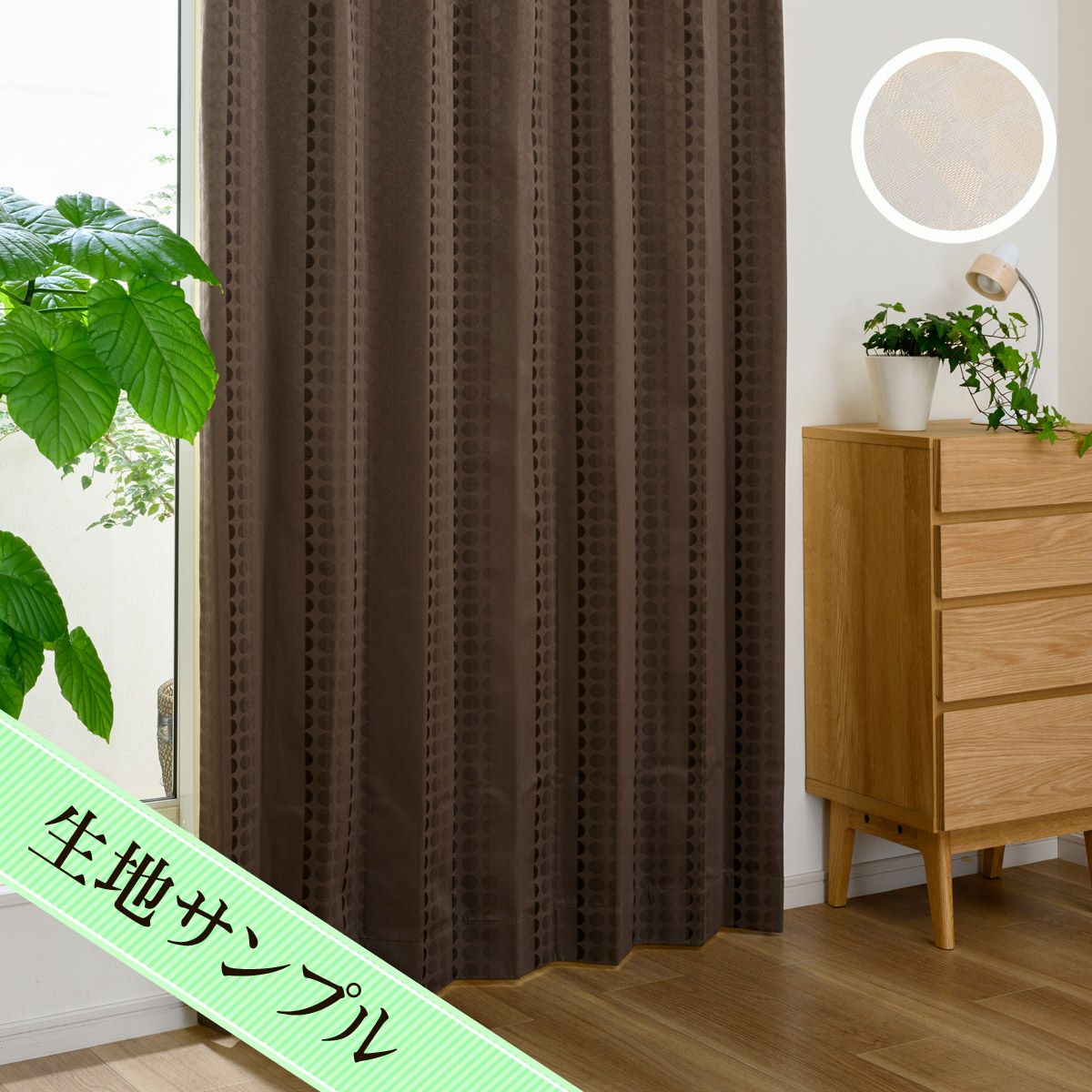 丸柄とストライプのコントラストがおしゃれなジャガード織 遮光率100% 完全1級遮光カーテン ロン(D-1191)生地サンプル