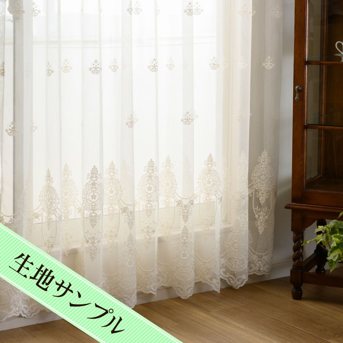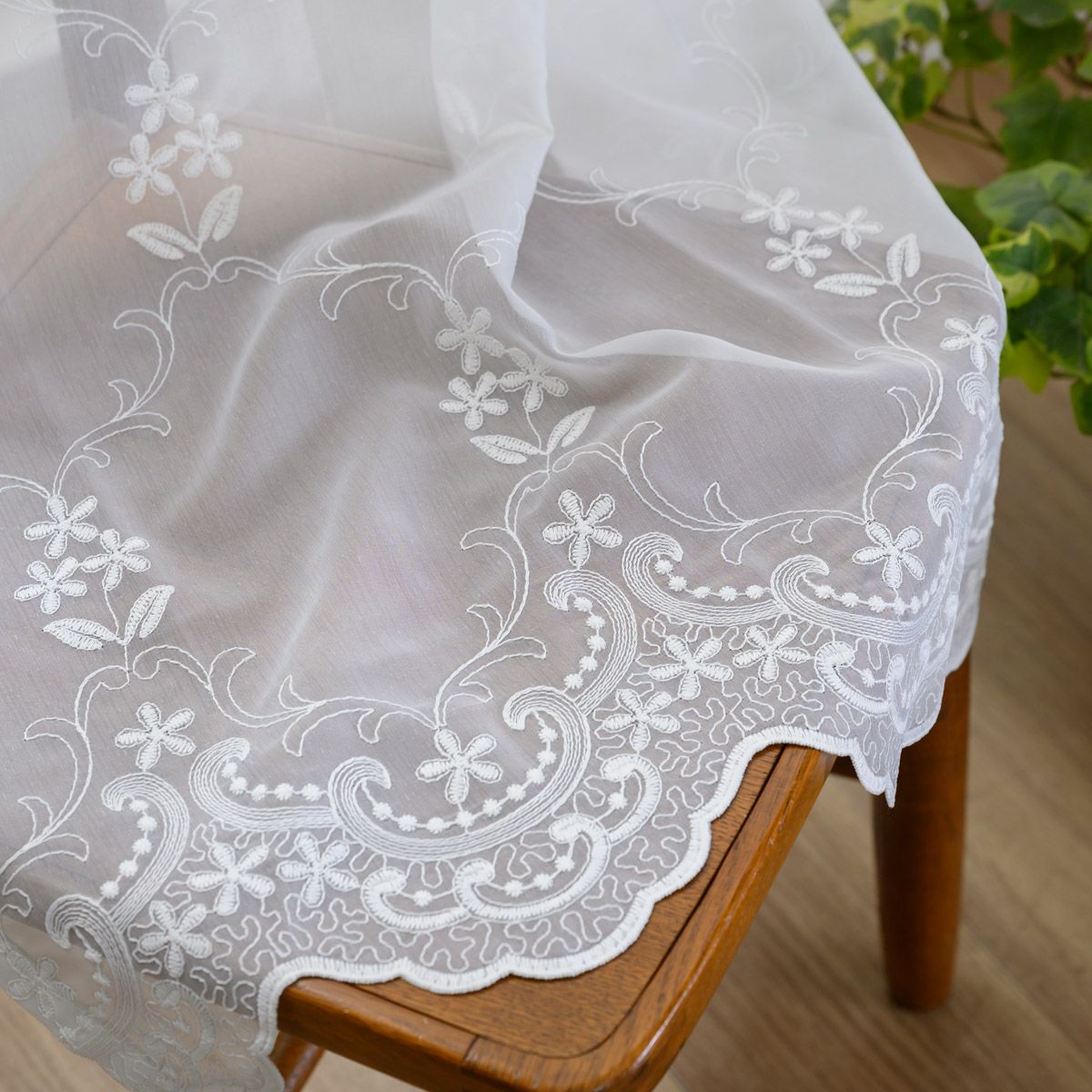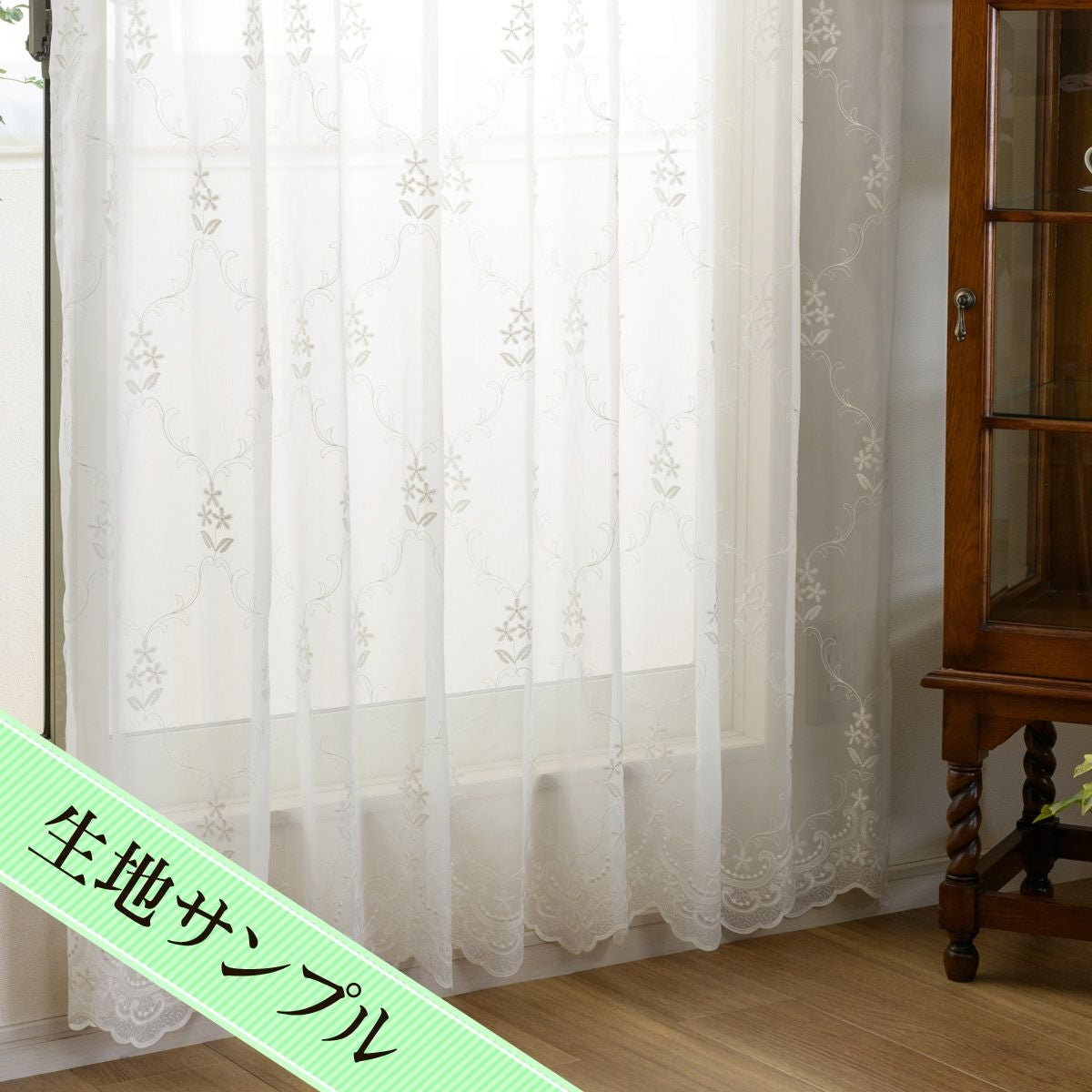 小花のリース柄の刺繍が大人フェミニンな裾スカラップのトルコ刺繍レースカーテン クラン(L-1266)生地サンプル
