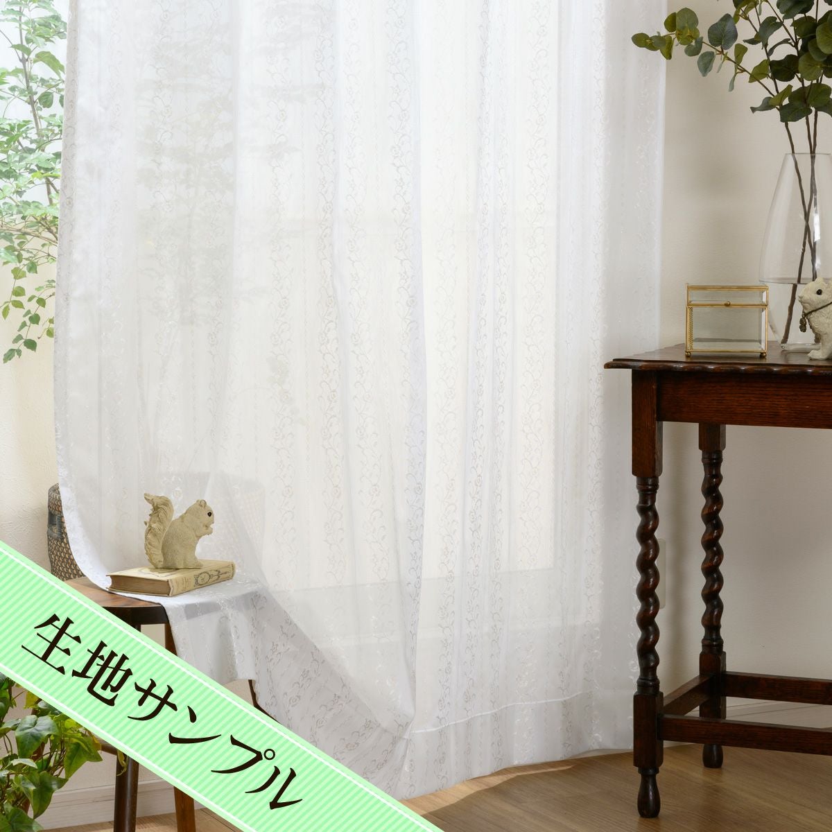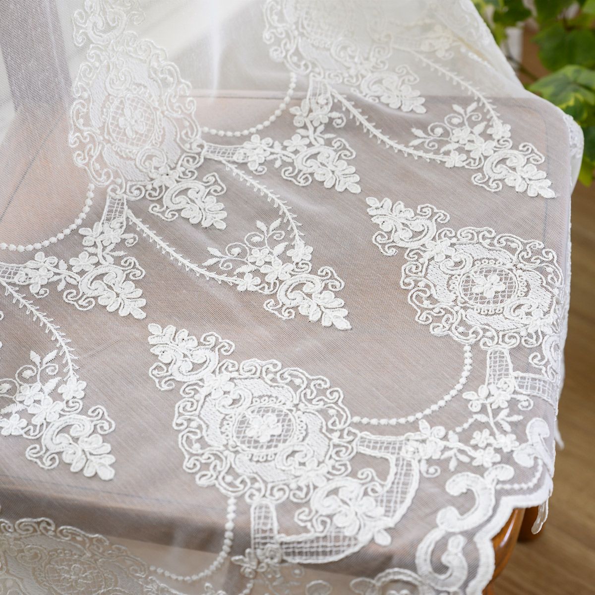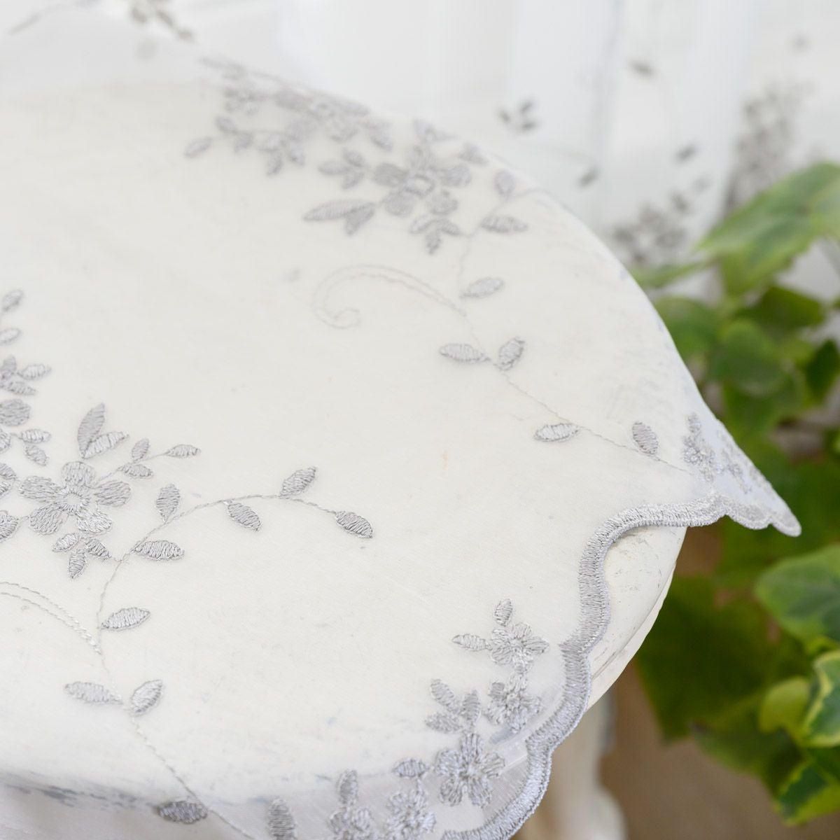 小花のリース柄の刺繍が大人フェミニンな裾スカラップのトルコ刺繍レースカーテン クラン(L-1266)生地サンプル