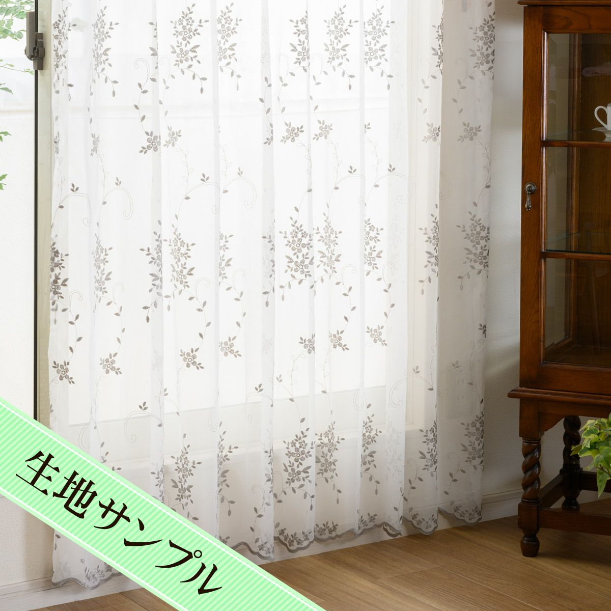 きらきらと咲き誇る草花の上品な刺繍が美しいボイルレースカーテン フィリス(L-1296)