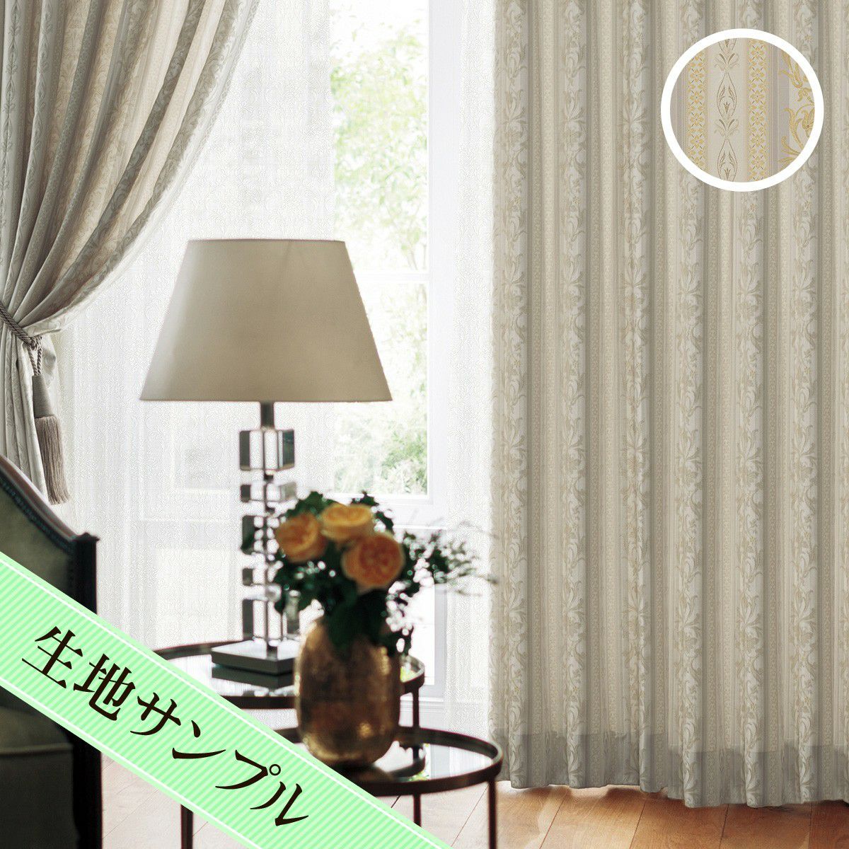 クラシックなダマスク柄カーテン エレノア(D-1198)生地サンプル