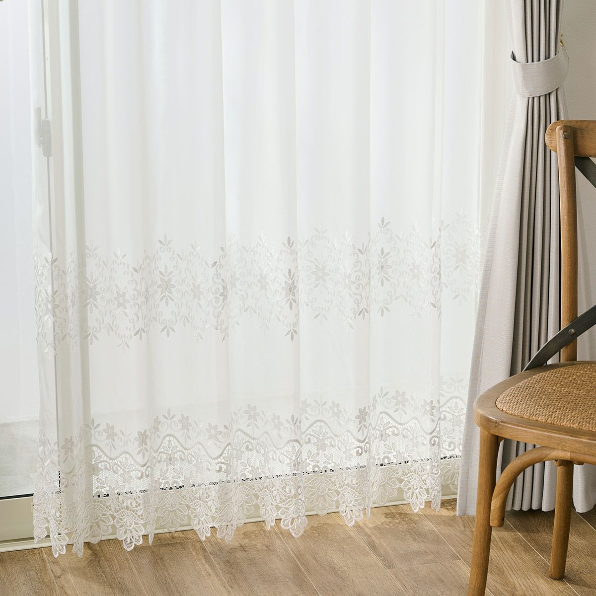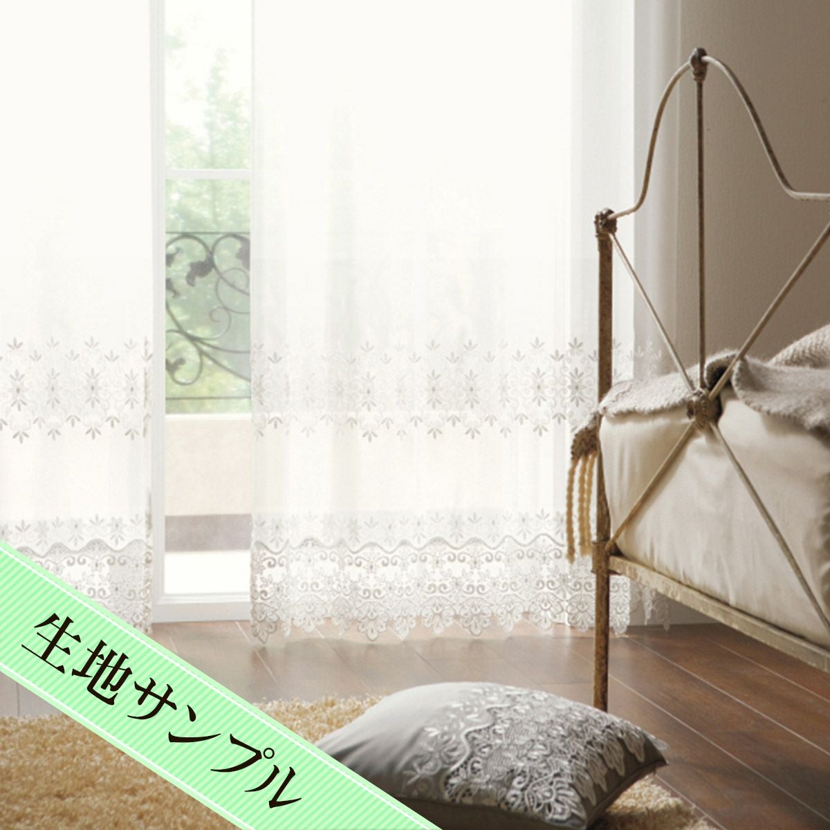 きらきらと咲き誇る草花の上品な刺繍が美しいボイルレースカーテン フィリス(L-1296)