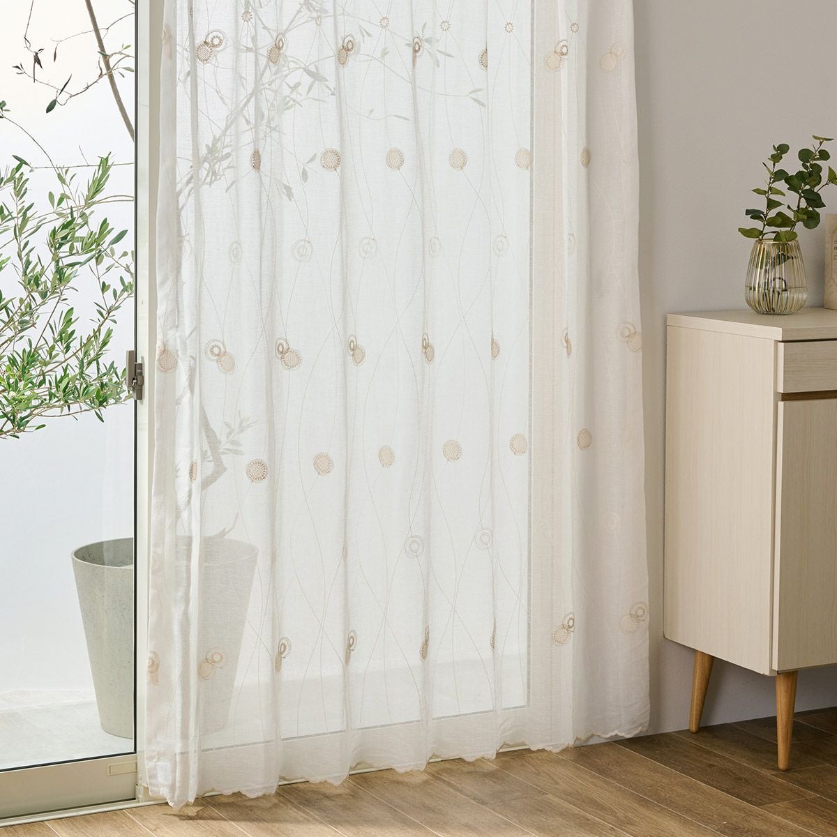ナチュラルモダンな丸い刺繍がやさしい雰囲気のトルコ刺繍レースカーテン フロッケ(L-8205)