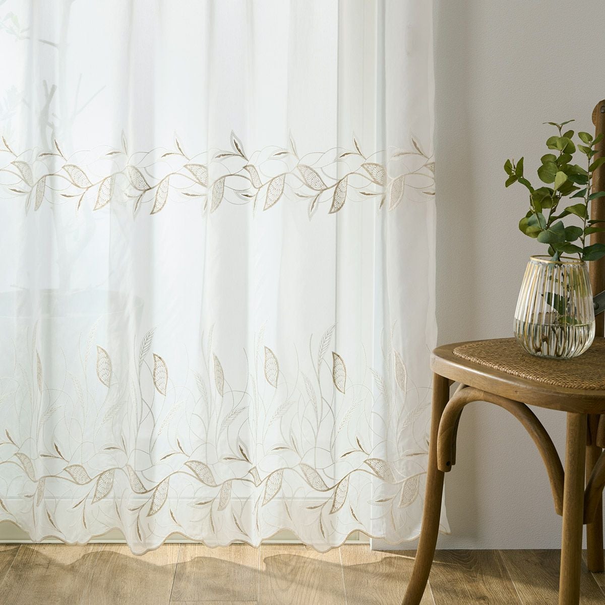 やさしいリーフ柄がおしゃれなトルコ刺繍レースカーテン エテルノ(L-8205)