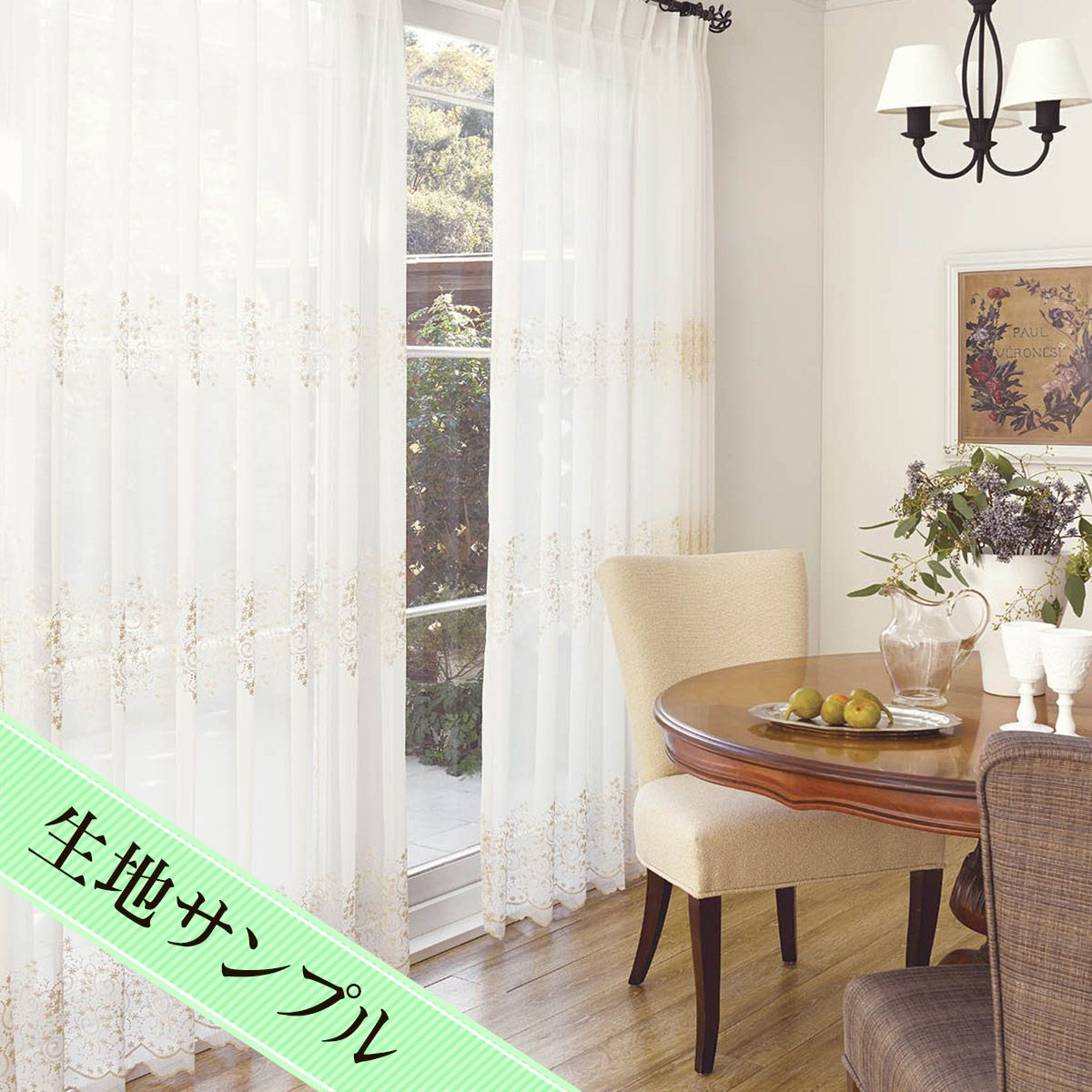 きらきらと咲き誇る草花の上品な刺繍が美しいボイルレースカーテン フィリス(L-1296)