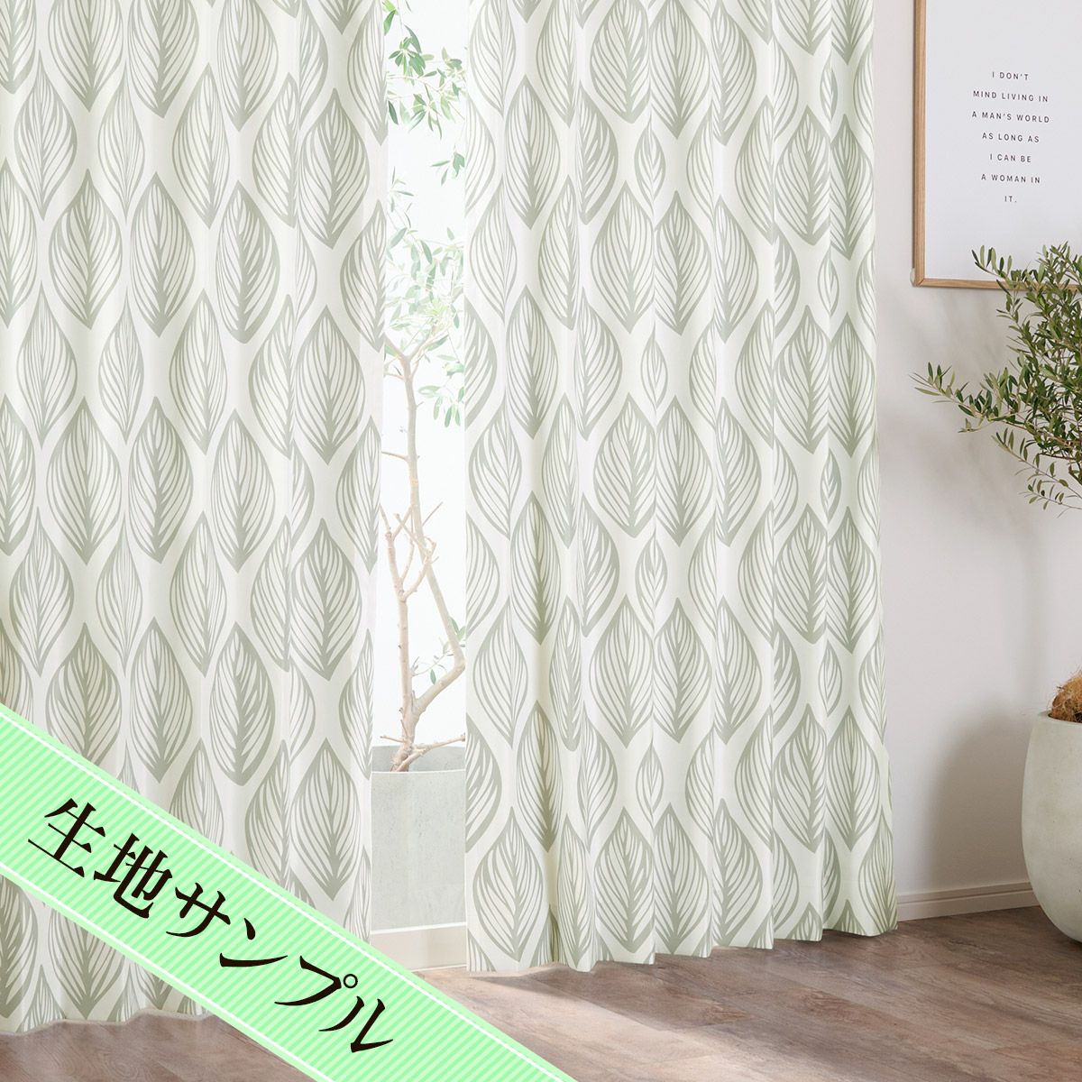 北欧ナチュラルなインテリアに合うリーフ柄の完全1級遮光カーテン レティ(D-1162)生地サンプル