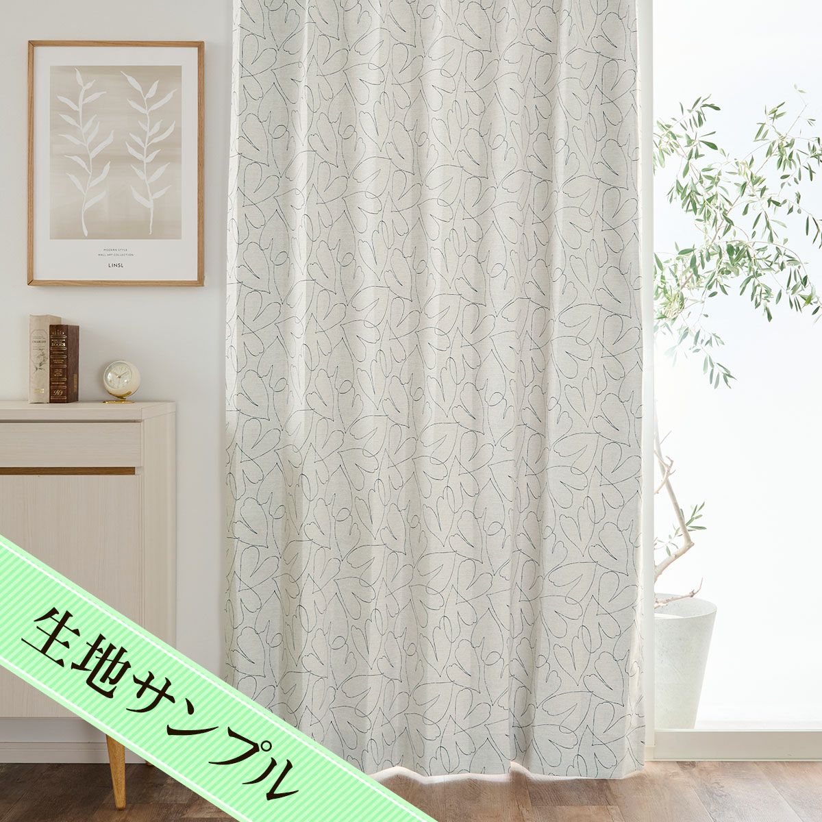 モダンな木立のような線画がおしゃれな裏地付き2級遮光カーテン フォレスタ(D-1193)生地サンプル