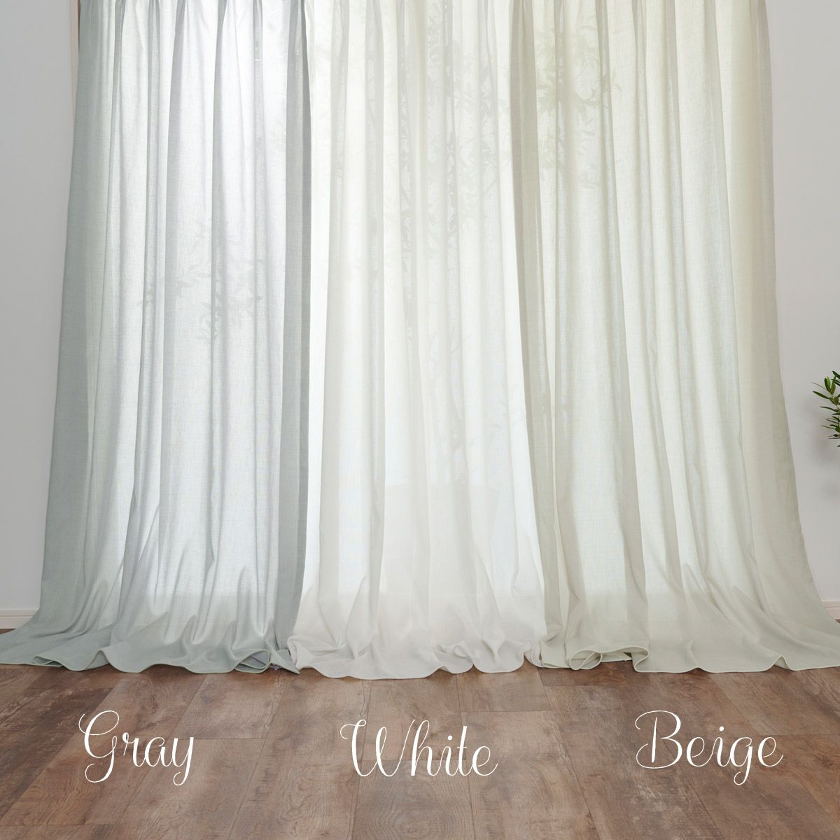 リネン85%ナチュラルなインテリアに合う大きな窓でも美しいシームレスレースカーテン