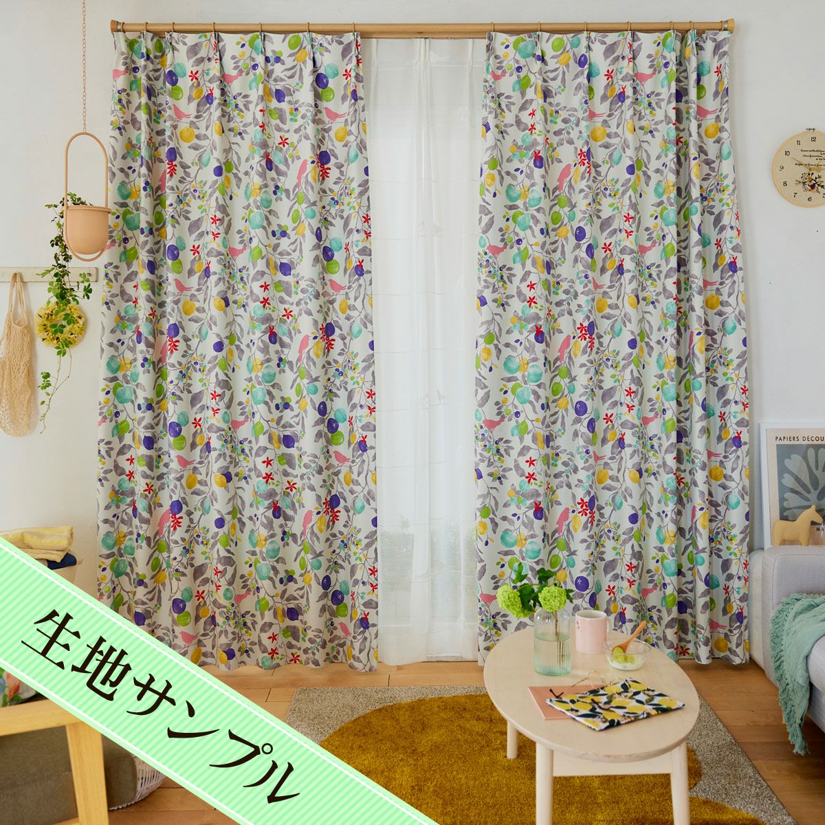 小鳥や植物を発色の綺麗な水彩タッチで表現した2級遮光カーテン イロドリ(D-1196)生地サンプル