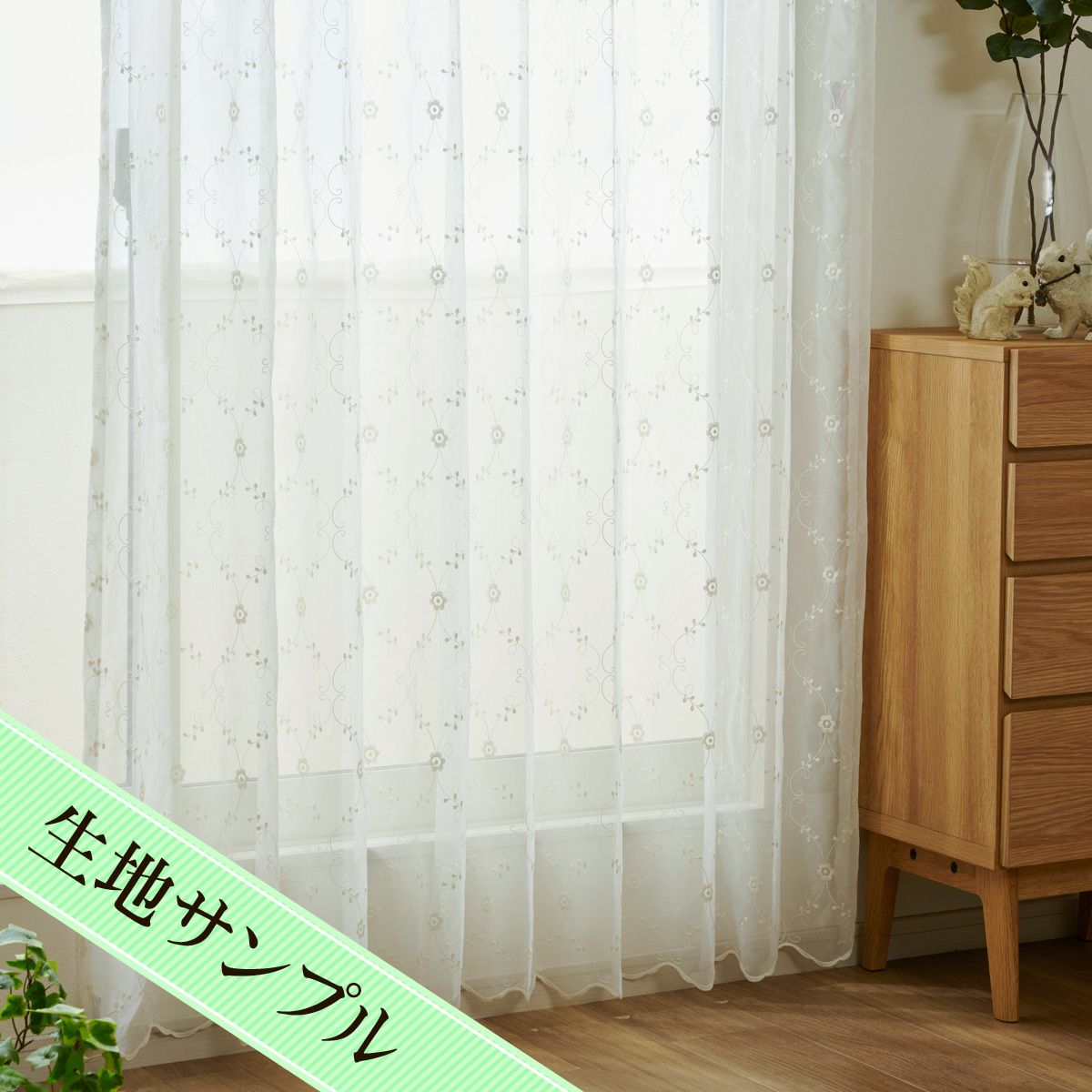 みずみずしいリーフ柄のレースカーテン ケイリー(L-1298)生地サンプル