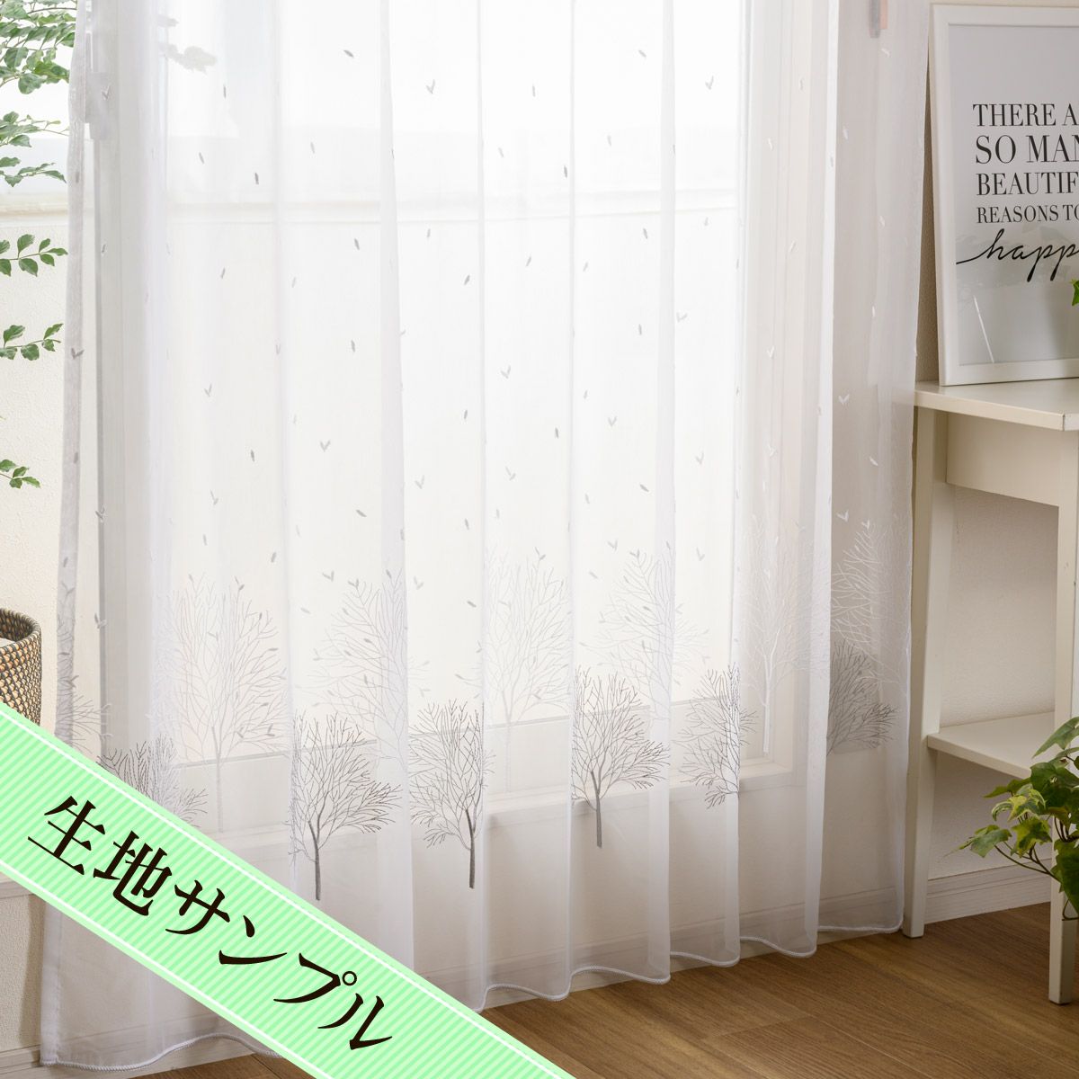 グレーと白の木立柄の刺繍が美しいシンプルモダンなトルコレースカーテン アルブル (L-1268)生地サンプル