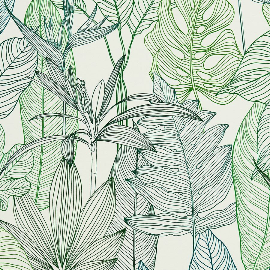 北欧モダンなモンステラ柄を幾何学模様のように表現した1・2級遮光カーテン ペッサム(D-1168)