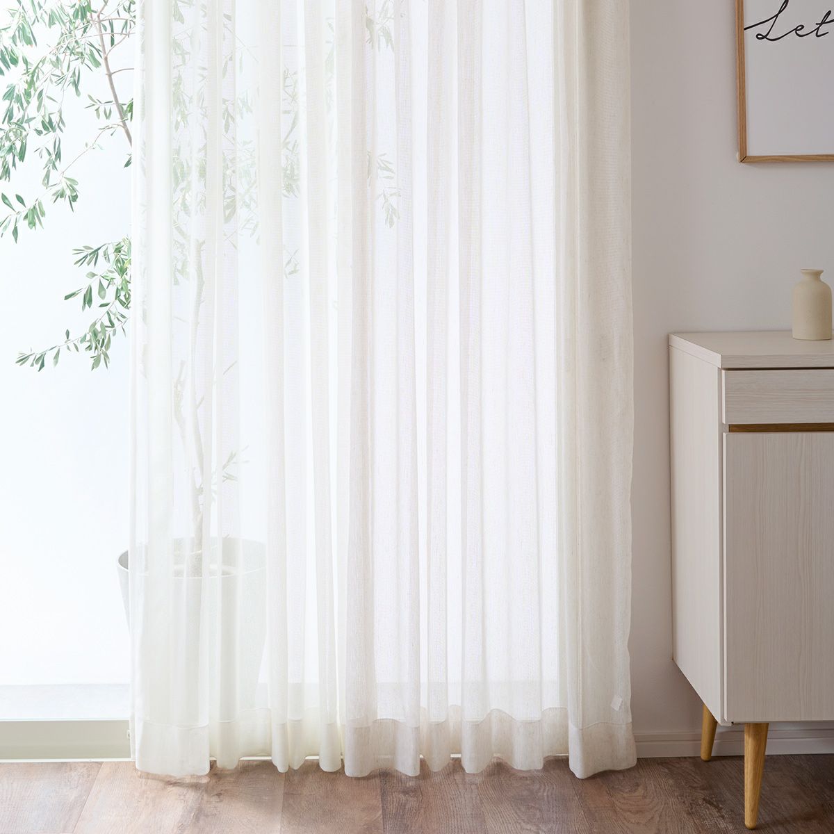 リネン85%ナチュラルなインテリアに合う大きな窓でも美しいシームレスレースカーテン