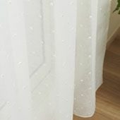 光沢のあるドットが散らばるキュートなカーテン。透明感のあるレースが厚地のカーテンからのぞくとさりげない可愛らしさが演出できます。厚地のキャンディと組み合わせるのもお勧めです。