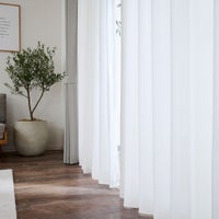 リネン85%ナチュラルなインテリアに合う大きな窓でも美しいシームレスレースカーテン