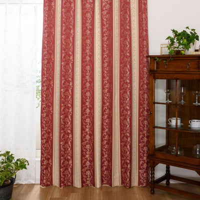 赤とゴールドの色合いが非常に綺麗なカーテンです。カーテンを開けたときに、カーテン本体のゴールドの立てラインと、タッセルのゴールドの箇所が合うようになっており、凝った仕様だと思います。 開けていても、閉めていても映えるカーテンだと思います。洋室はもちろん、和室にも合う製品かと思います。 遮光性能もかなり高いと感じました。 お値段以上の価値があると思います。