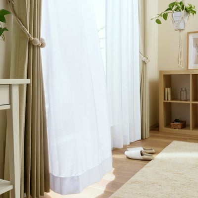 リネン85%ナチュラルなインテリアに合う大きな窓でも美しいシームレスレースカーテン