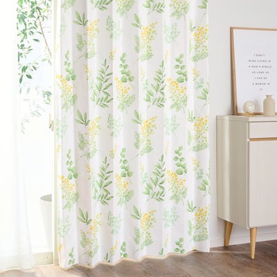 水彩タッチのリーフ柄に癒される完全1級遮光カーテン